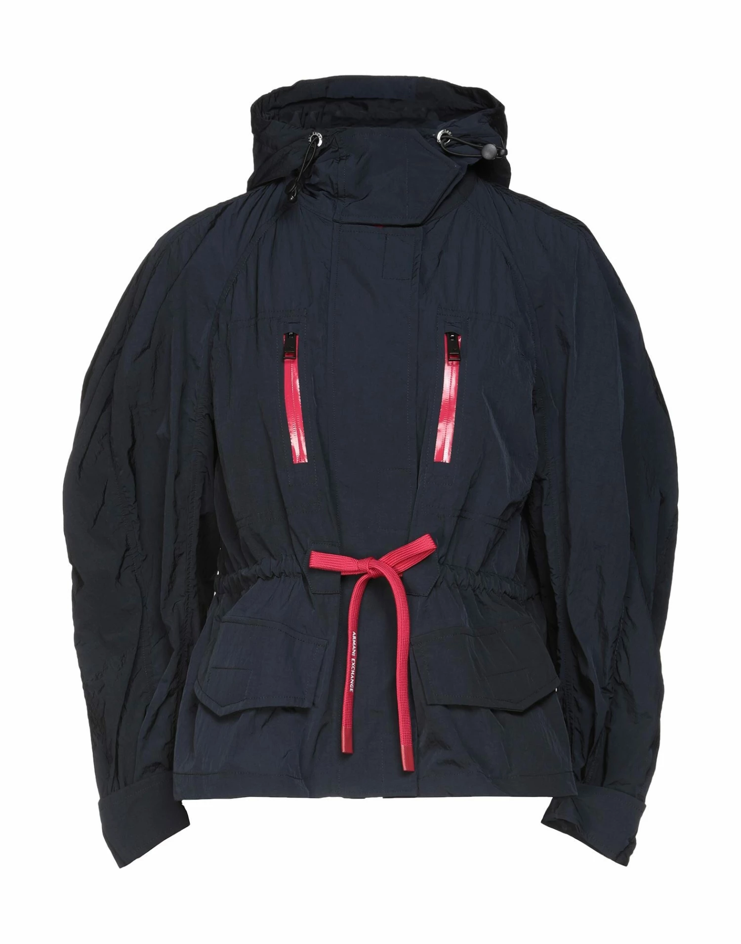 synthetic fibre, contrasting applications, logo, solid color, single-breasted , zipper closure, hooded collar, multipockets, long sleeves, unlined