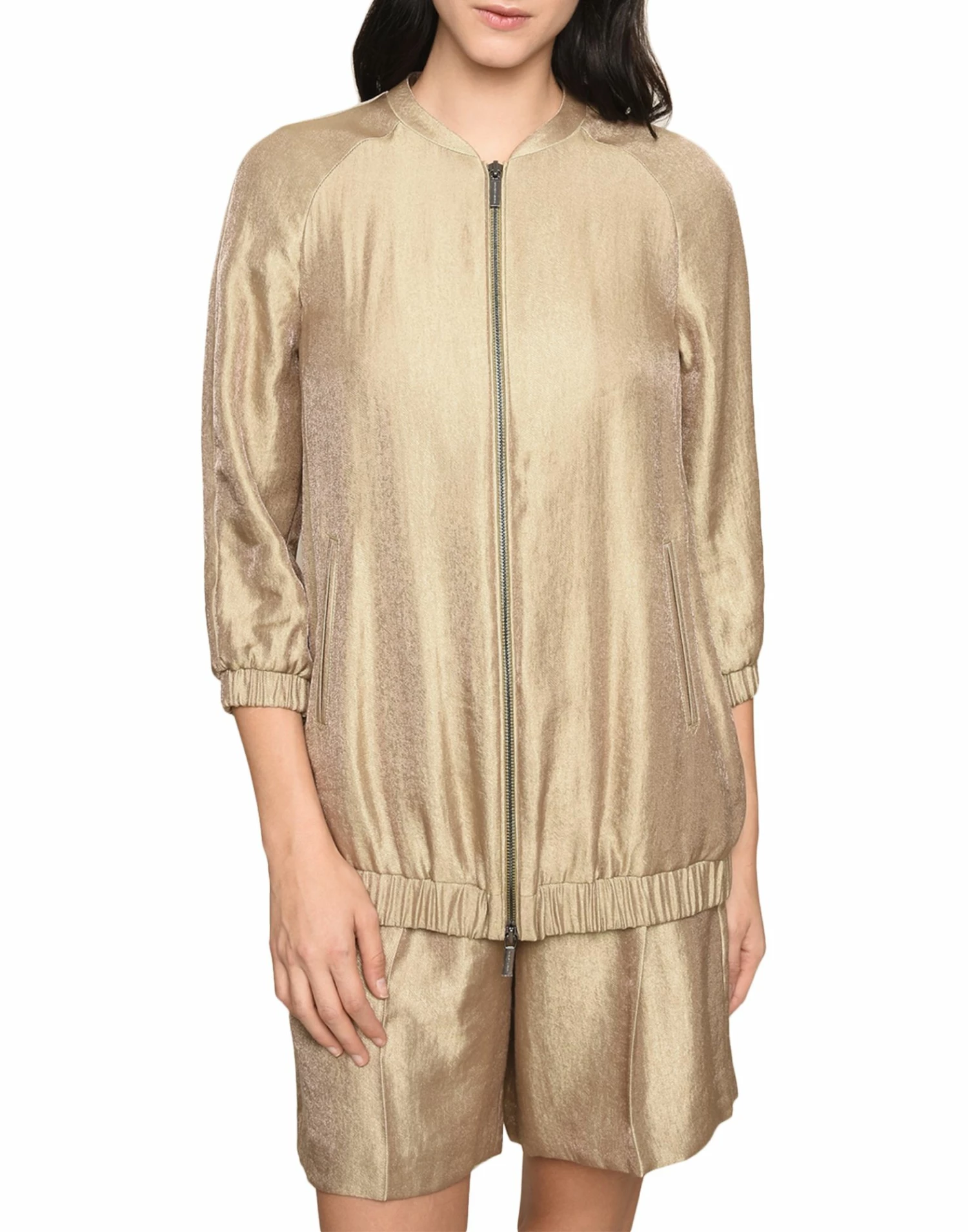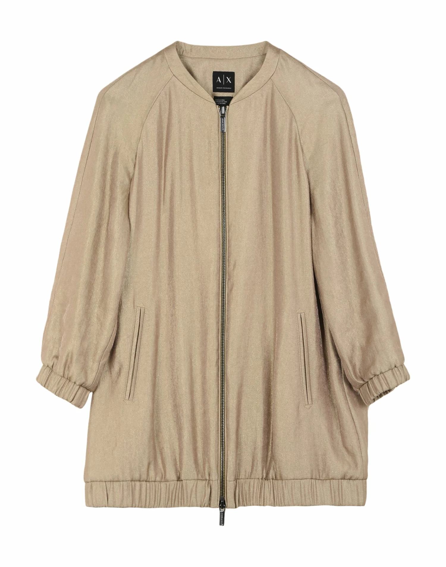 twill, logo, basic solid color, single-breasted , zip, mandarin collar, multipockets, 3/4 length sleeves, unlined, generic outerwear
