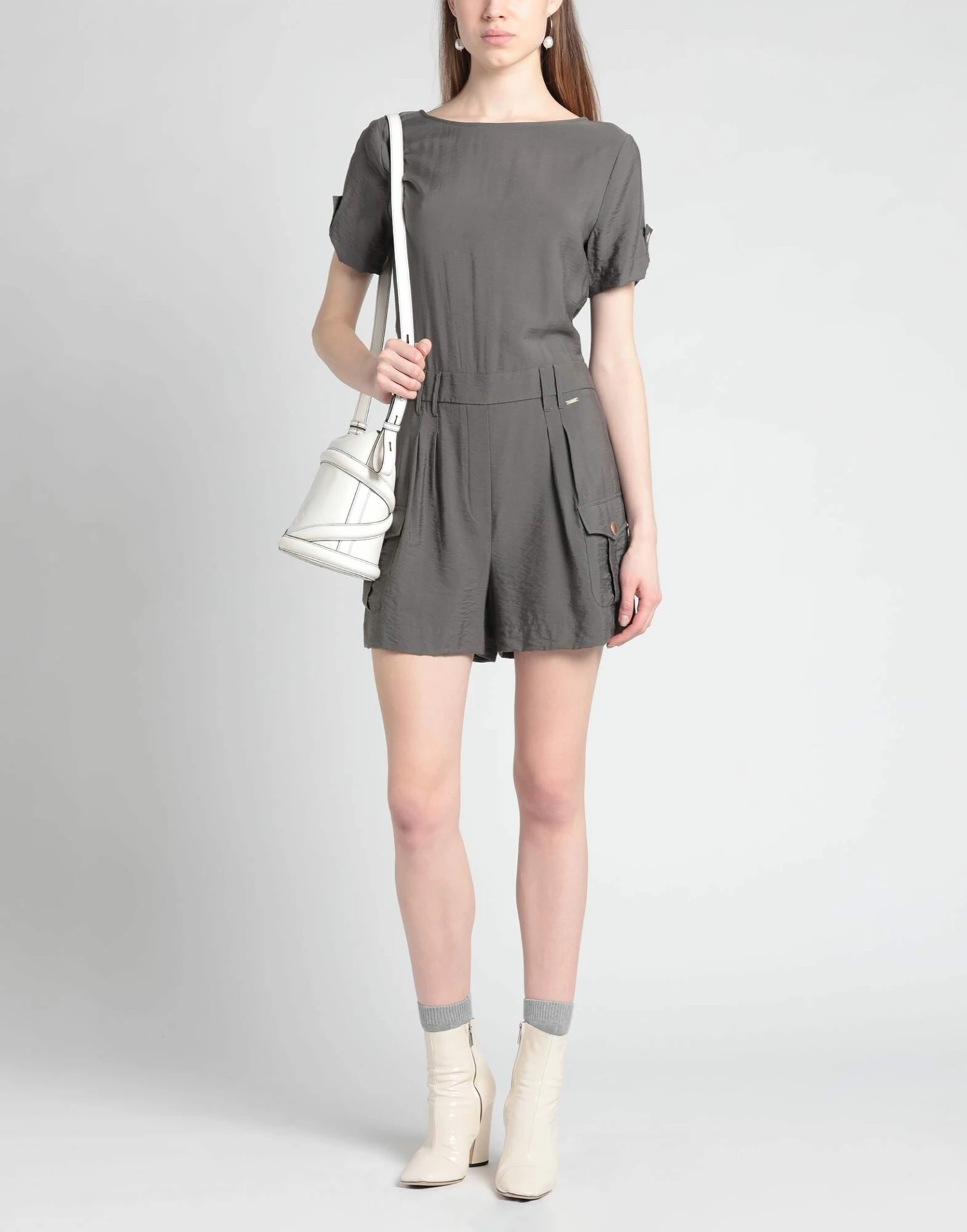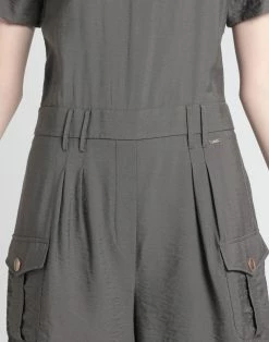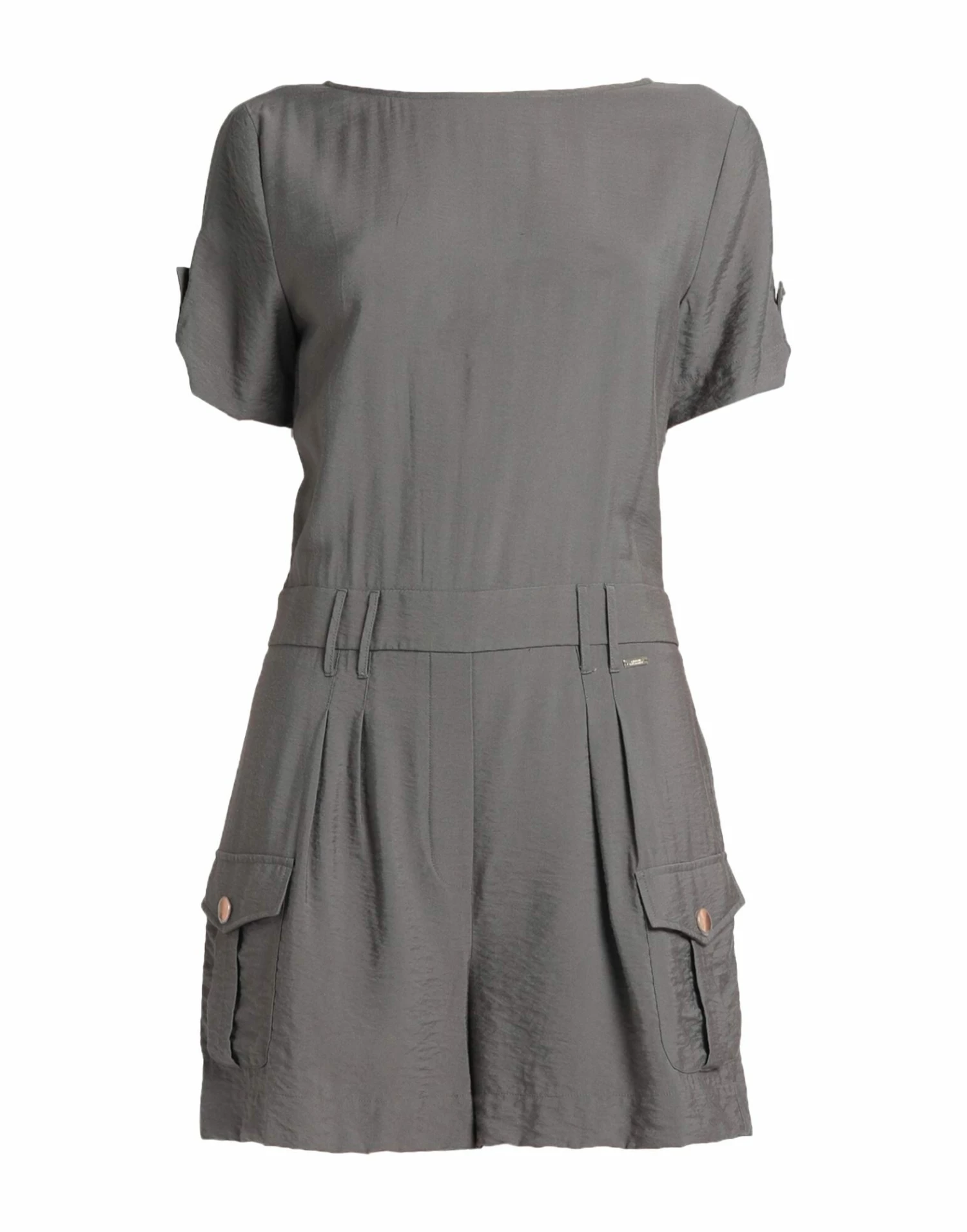 twill, brand logo, solid color, round collar, short sleeves, zipper closure, multipockets