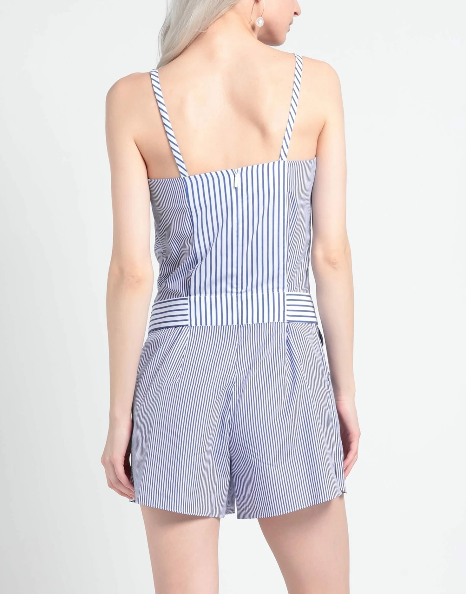 plain weave, belt, brand logo, stripes, wide neckline, sleeveless, zipper closure, multipockets