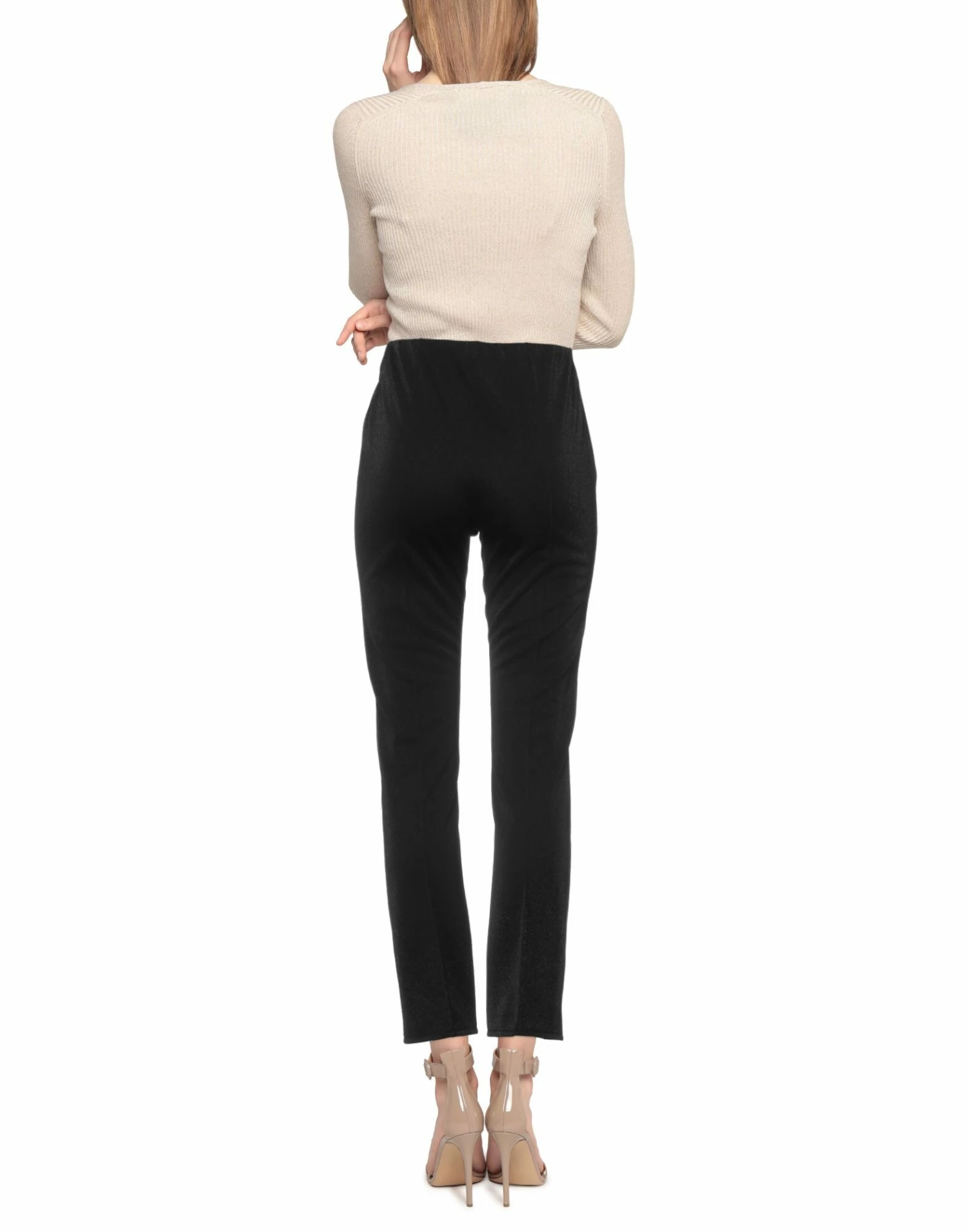 jersey, lamé, metal applications, brand logo, mid rise, solid color, elasticized waist, comfort fit, straight leg, no pockets