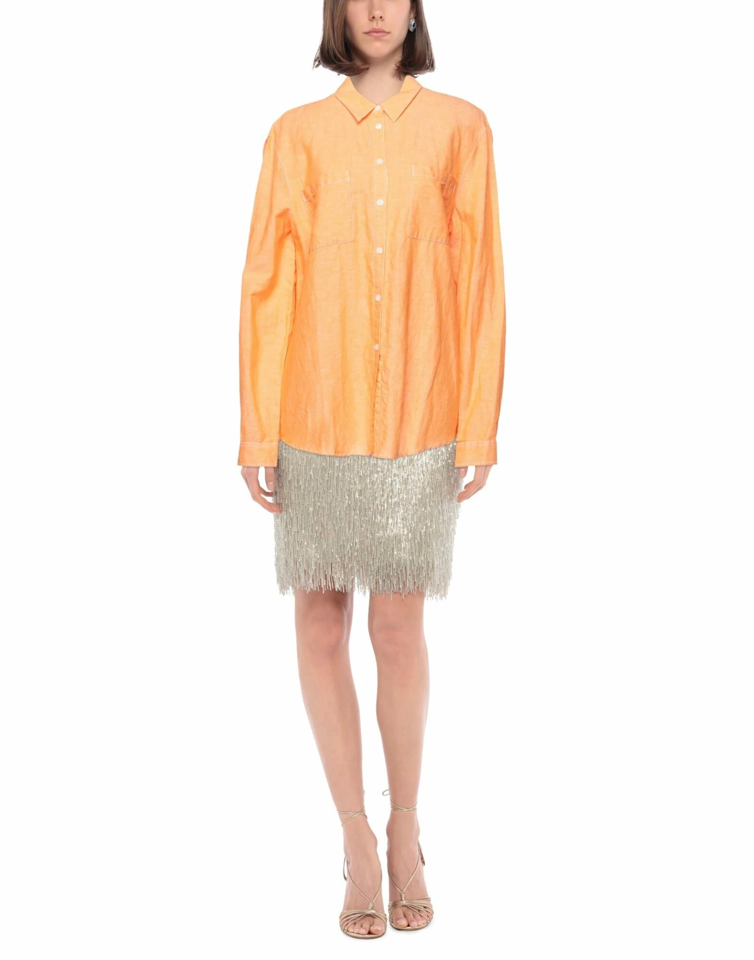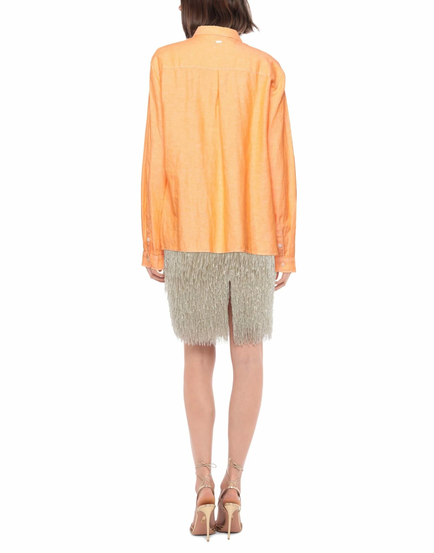 plain weave, brand logo, solid color, classic neckline, long sleeves, buttoned cuffs, button closing, two breast pockets