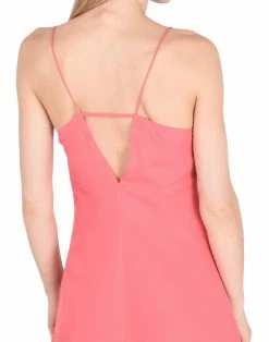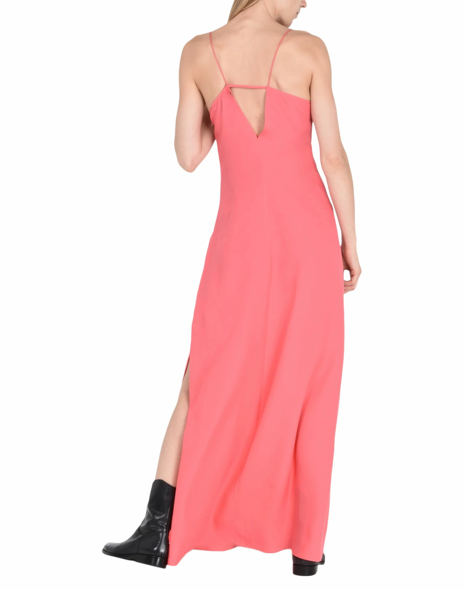satin, no appliqués, basic solid color, deep neckline, sleeveless, no pockets, side slit, side closure, hook-and-bar, zip, unlined, slip style