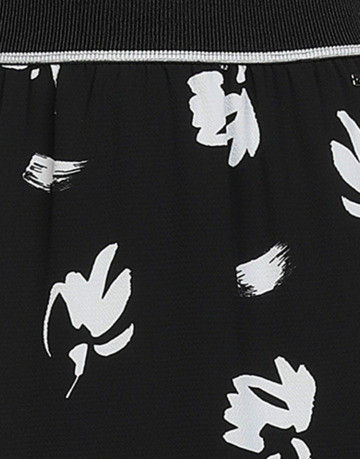 crepe, logo, two-tone, elasticized waist, no pockets, semi-lined, front slit, stretch