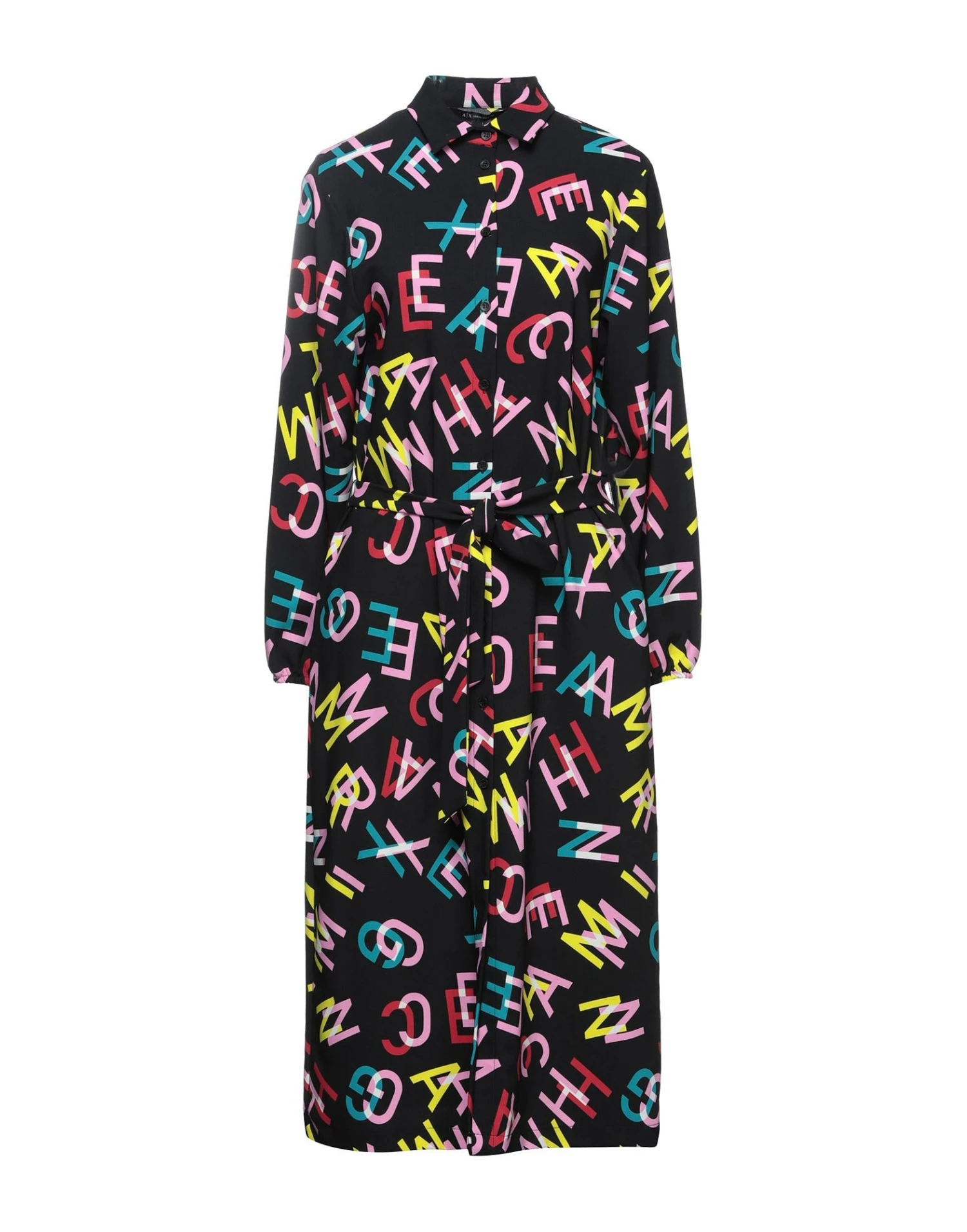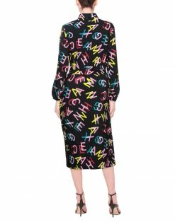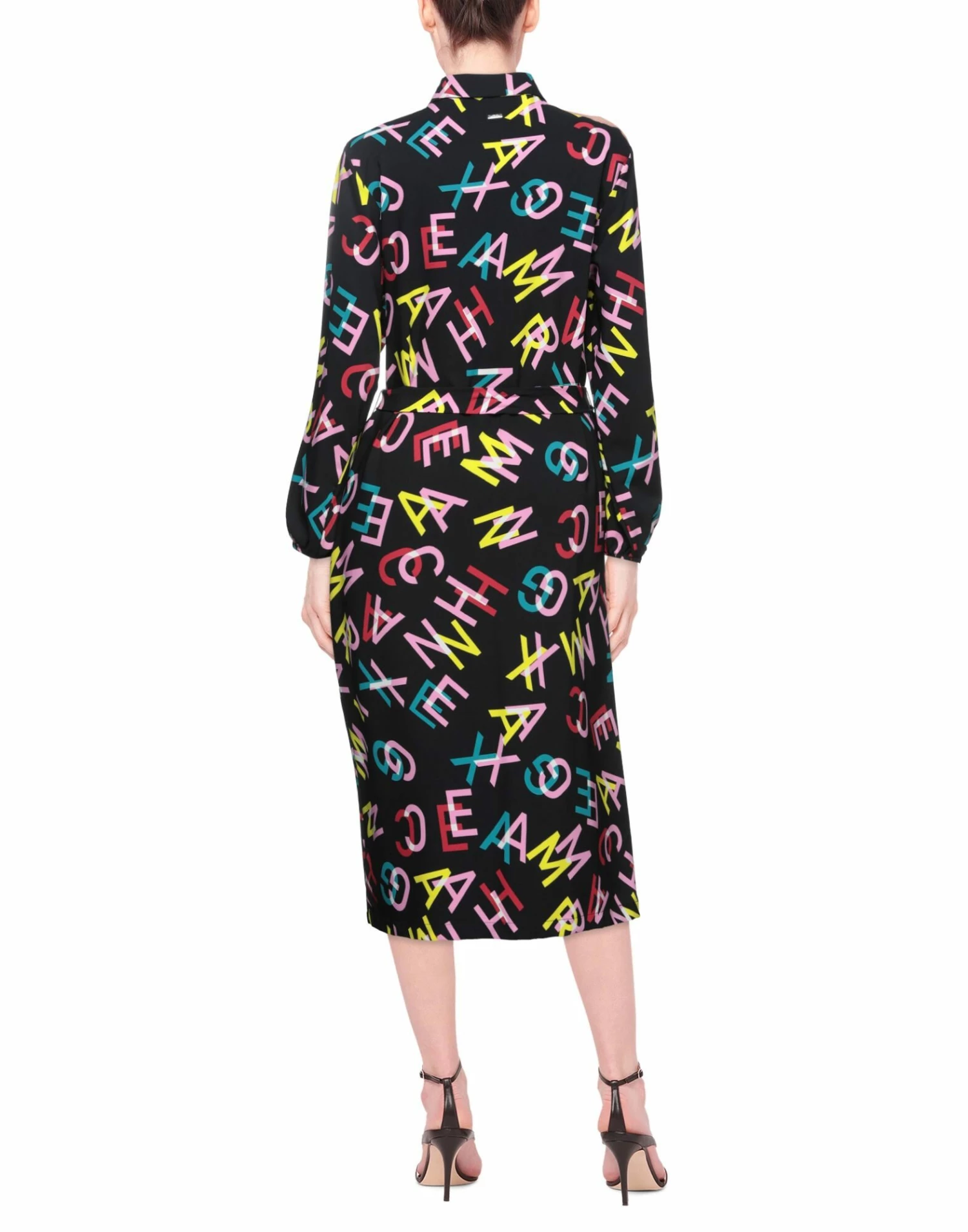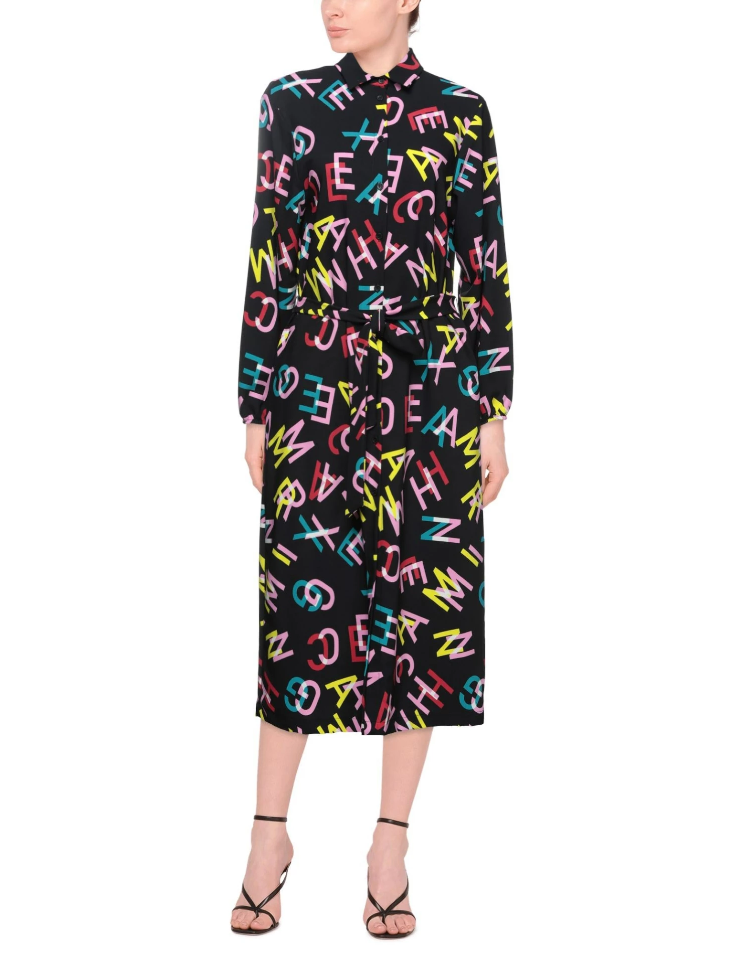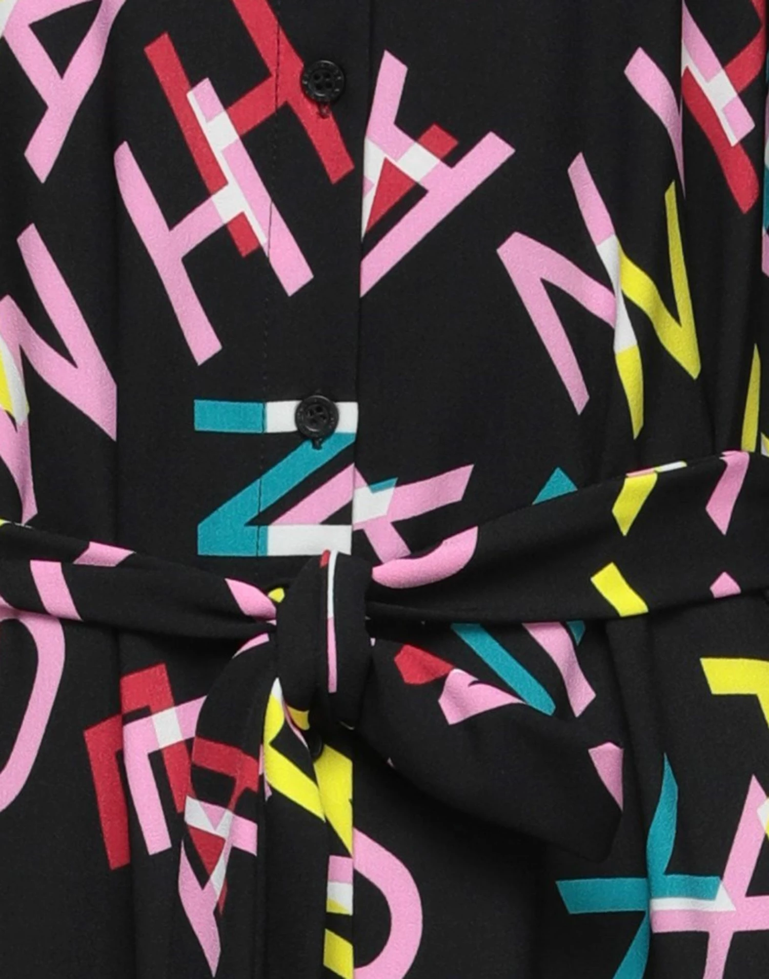 crepe, belt, logo design, long sleeves, classic neckline, no pockets, front closure, button closing, unlined, stretch
