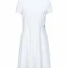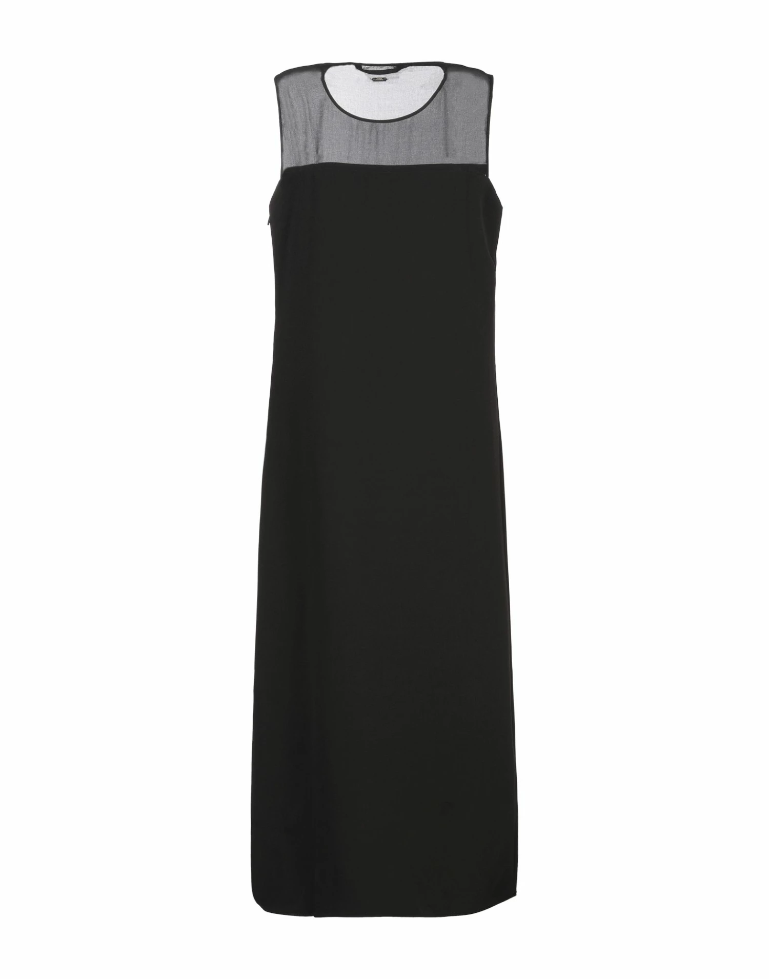 crepe, plain weave, logo, basic solid color, round collar, sleeveless, no pockets, side slit, side closure, zip, unlined, stretch