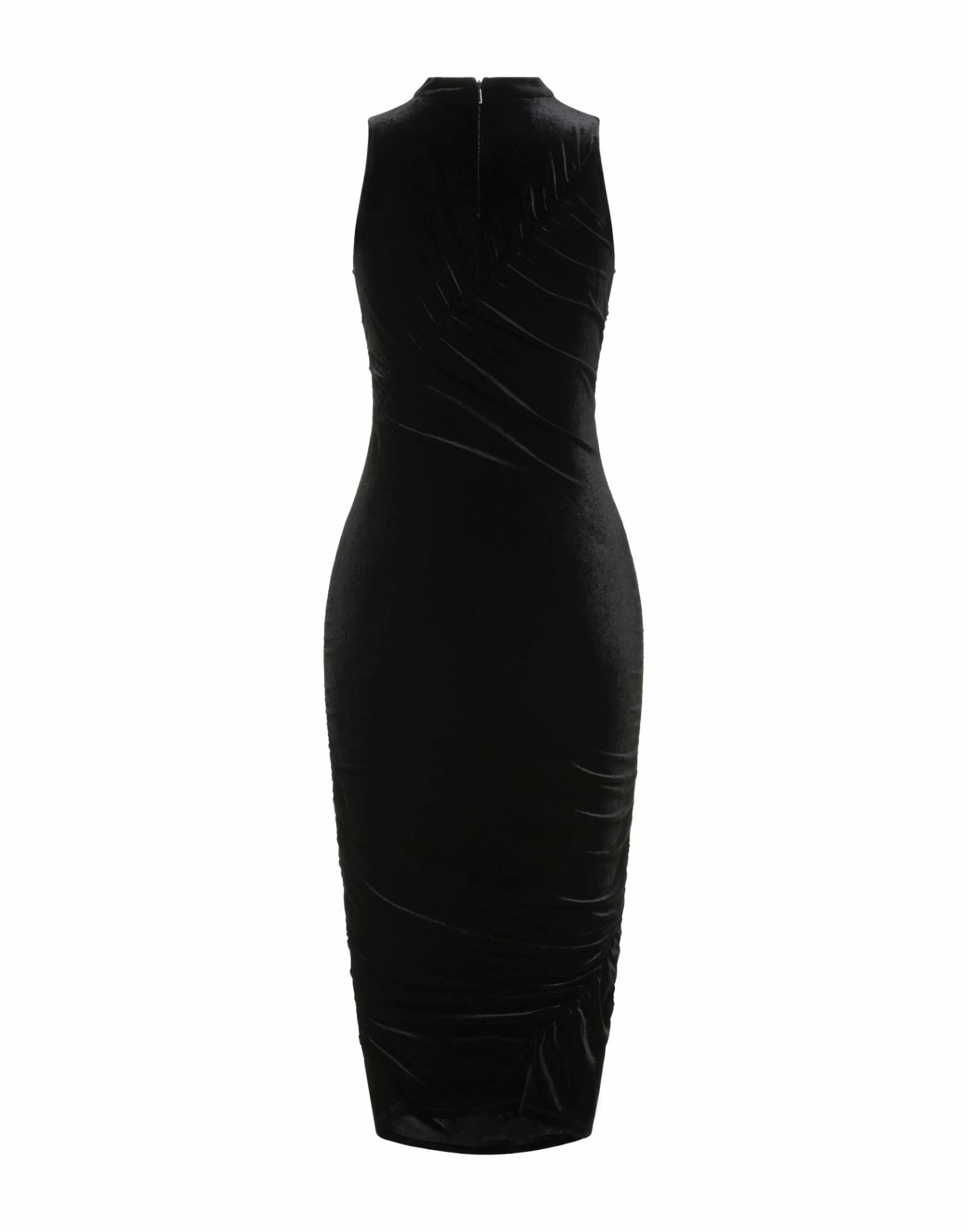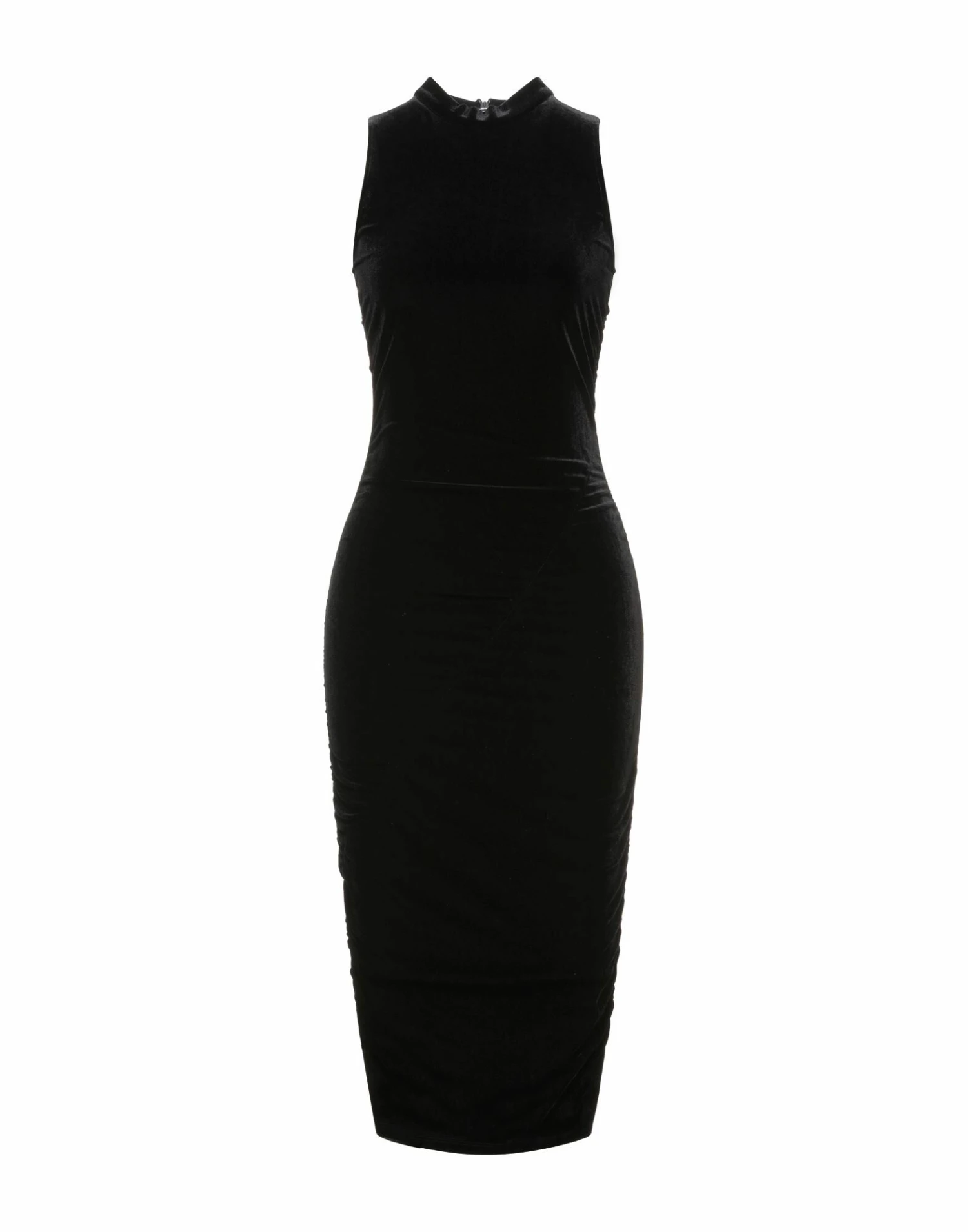 chenille, draped detailing, basic solid color, round collar, sleeveless, no pockets, rear closure, zipper closure, unlined, stretch