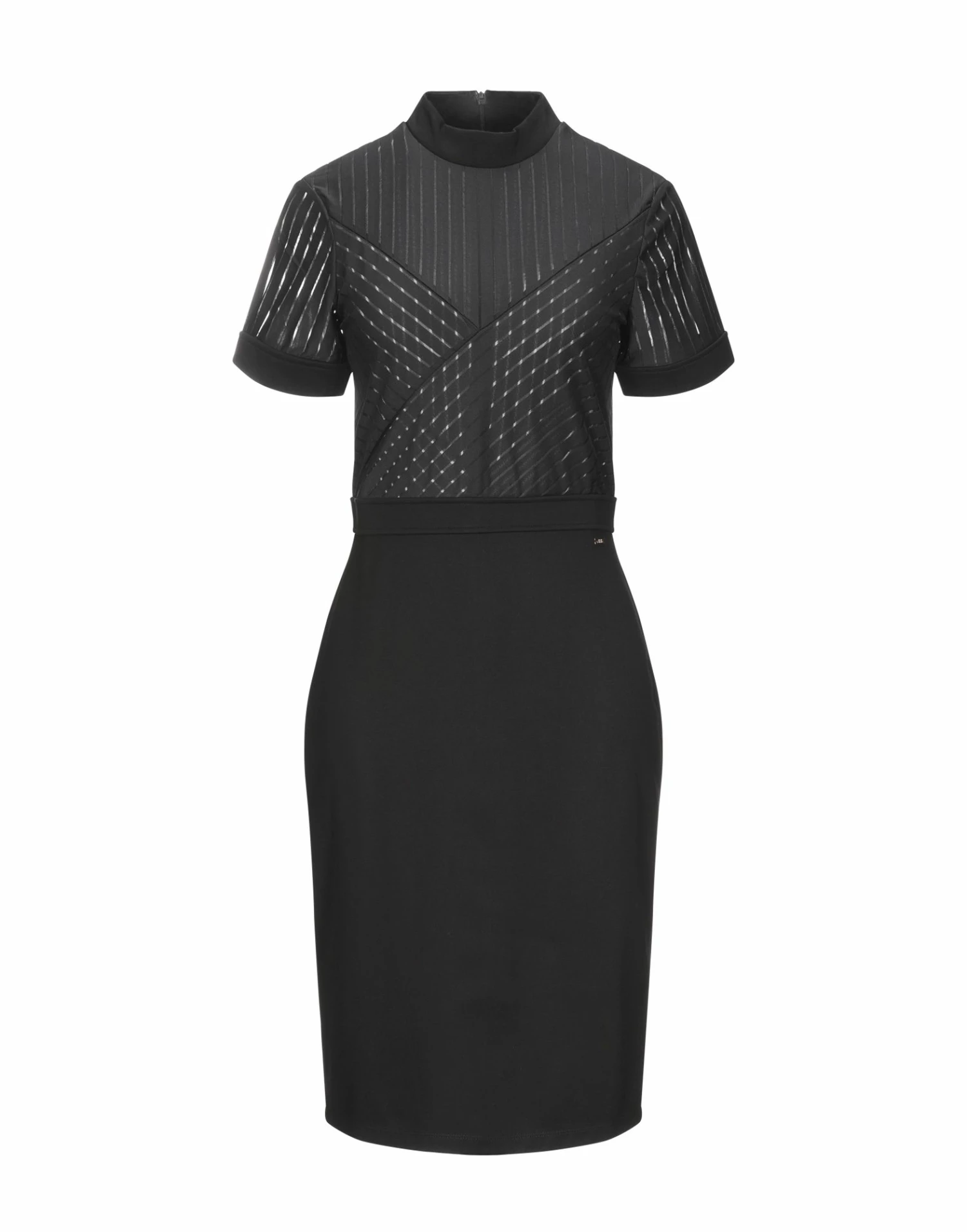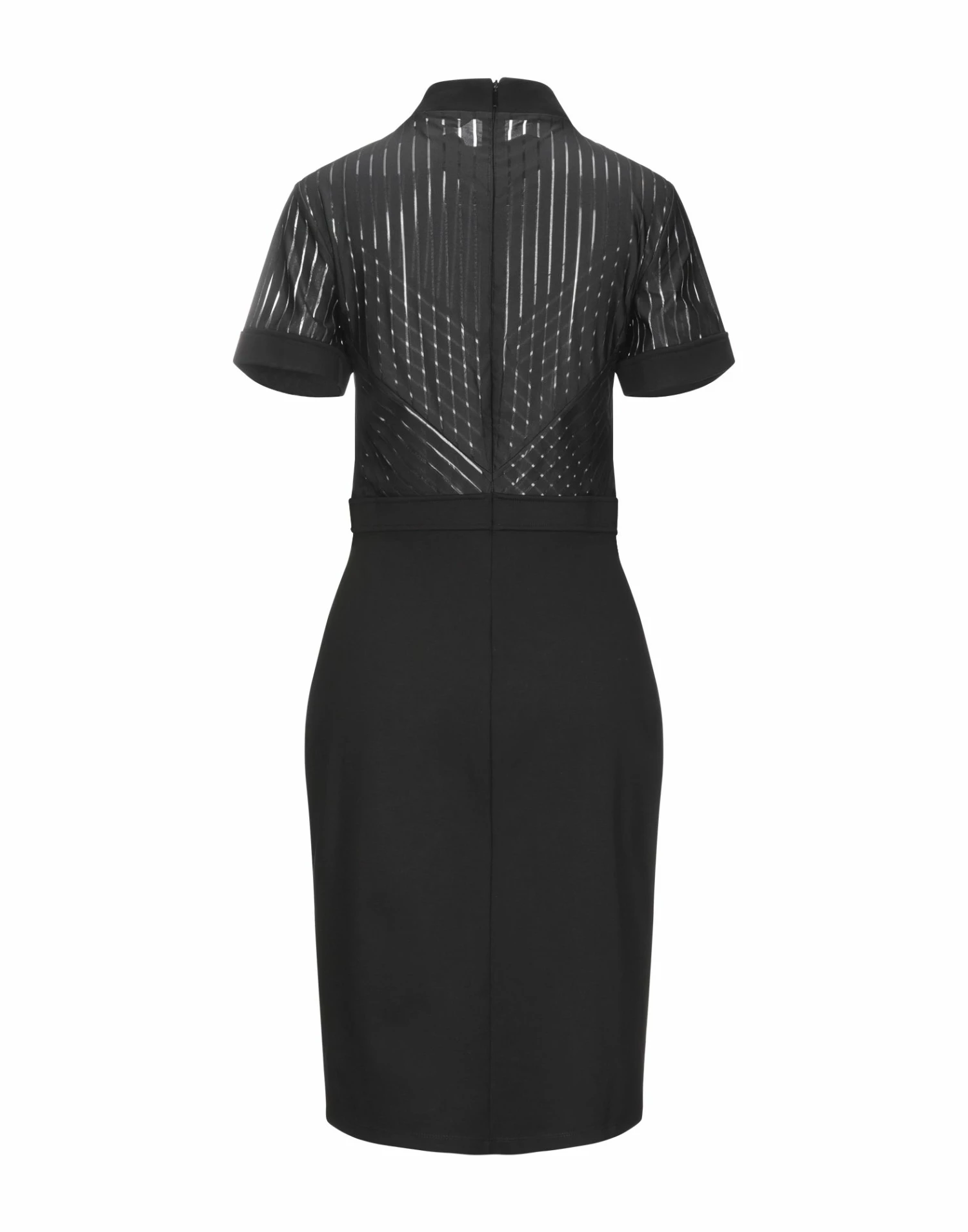 tulle, jersey, logo, basic solid color, round collar, short sleeves, no pockets, rear closure, zipper closure, unlined, stretch