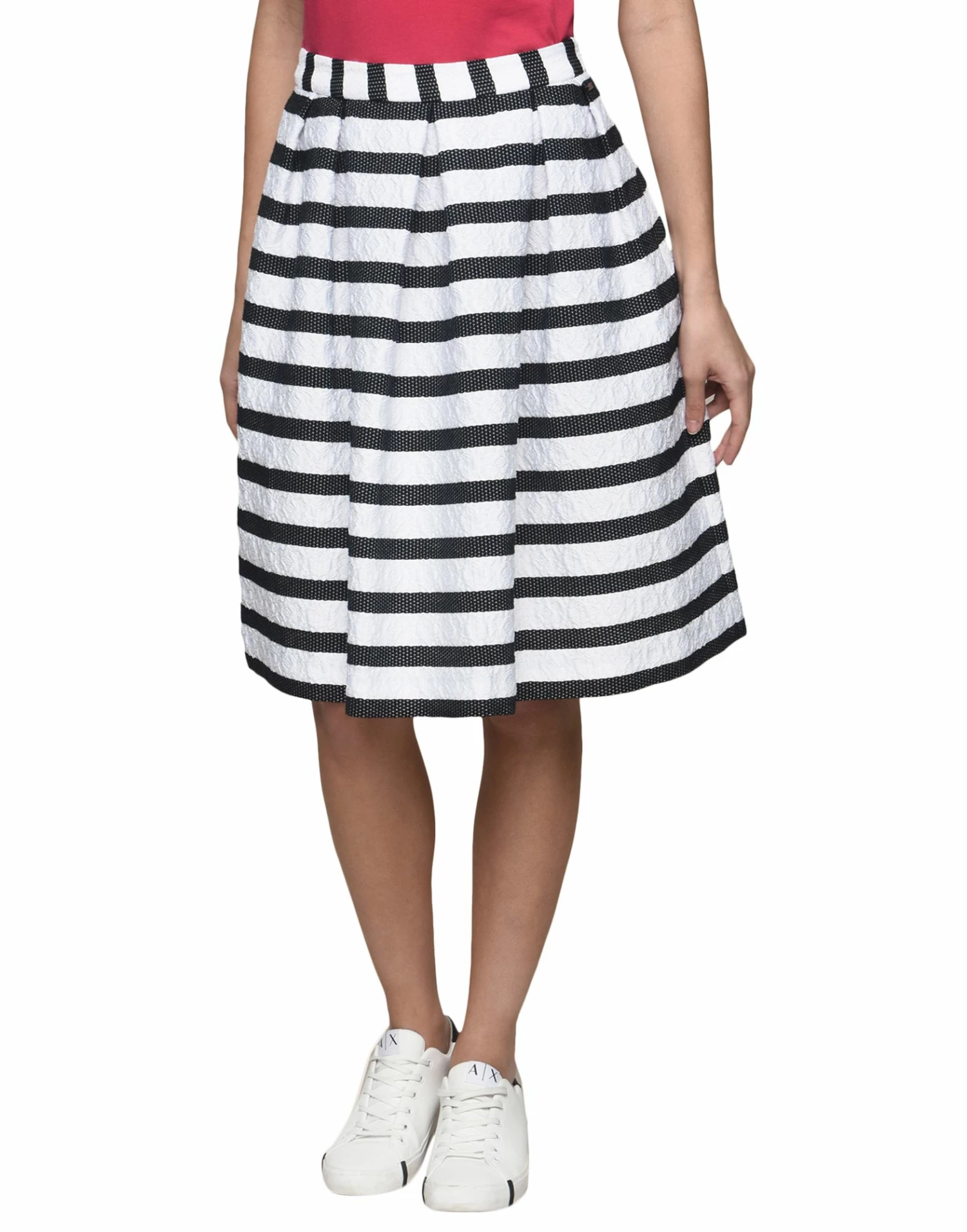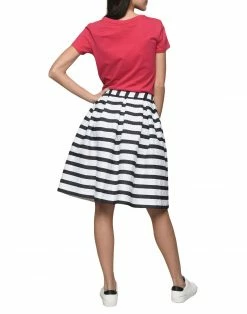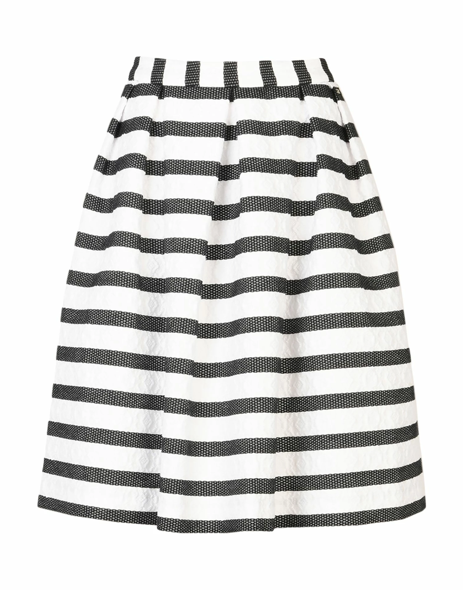 jacquard, plain weave, brand logo, stripes, no pockets, side closure, zipper closure, unlined, trapeze style