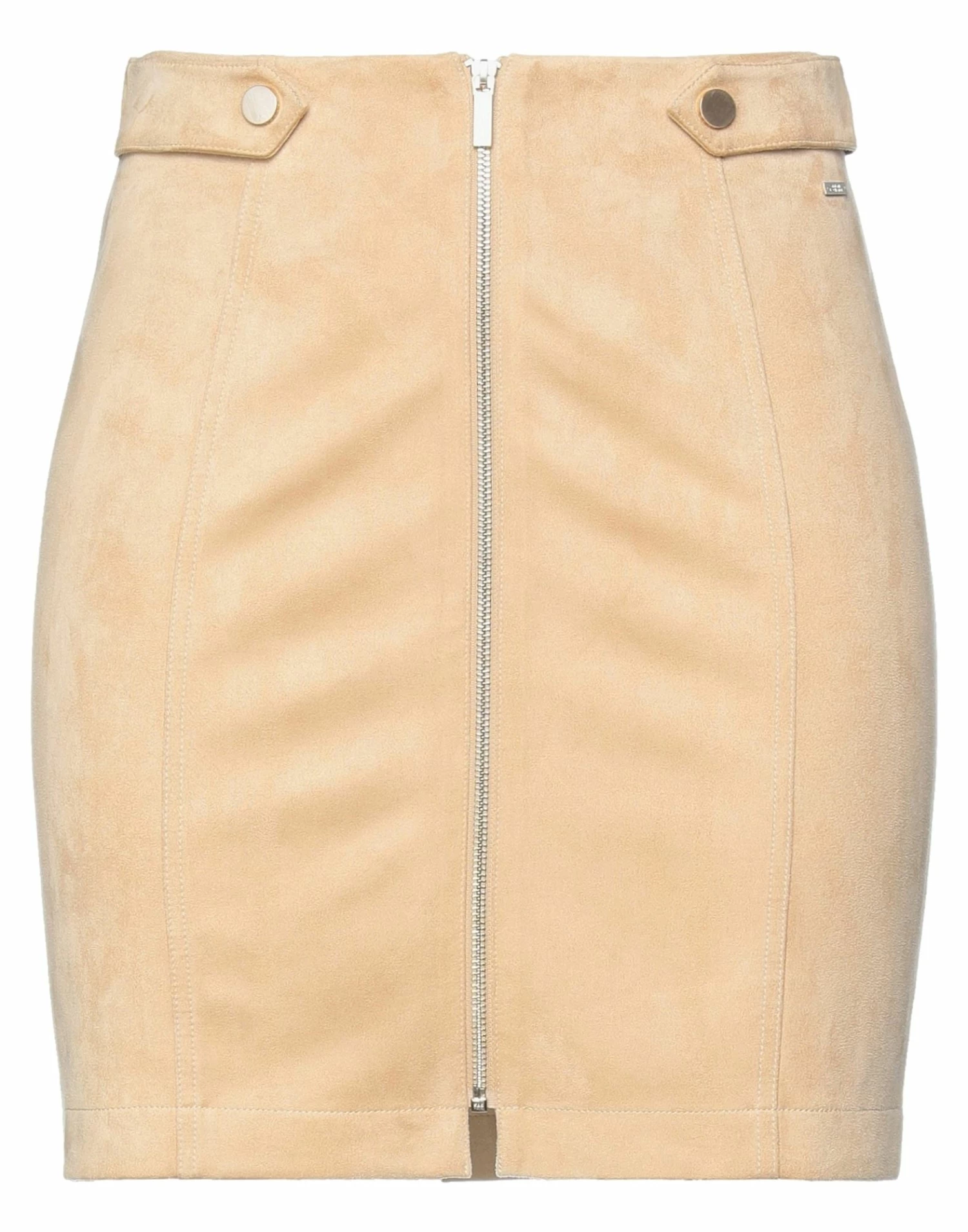 suede effect, synthetic fibre, brand logo, solid color, regular fit, zipper closure, no pockets, stretch