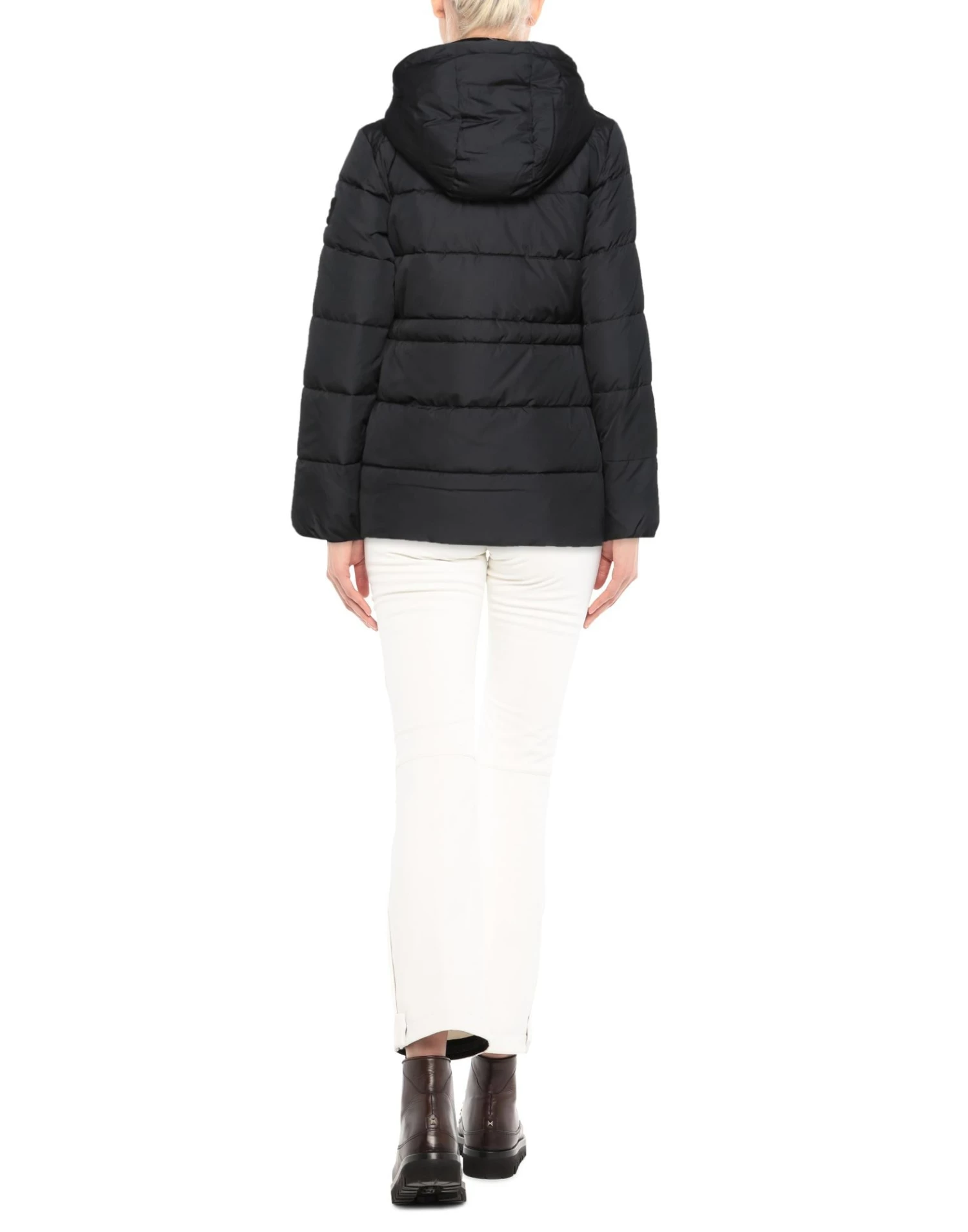 techno fabric, brand logo, solid color, single-breasted , neckline with removable hood, long sleeves, zipper closure, multipockets, internal padding