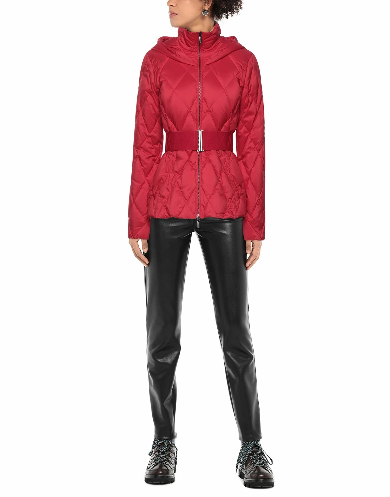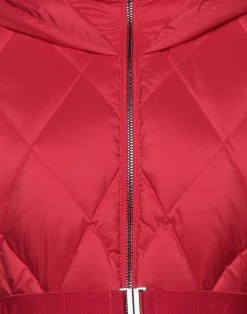 quilted, techno fabric, detachable application, logo, basic solid color, single-breasted , zipper closure, hooded collar, multipockets, long sleeves, duck down filling, contains non-textile parts of animal origin