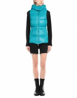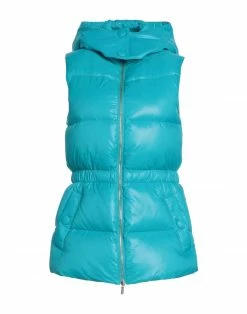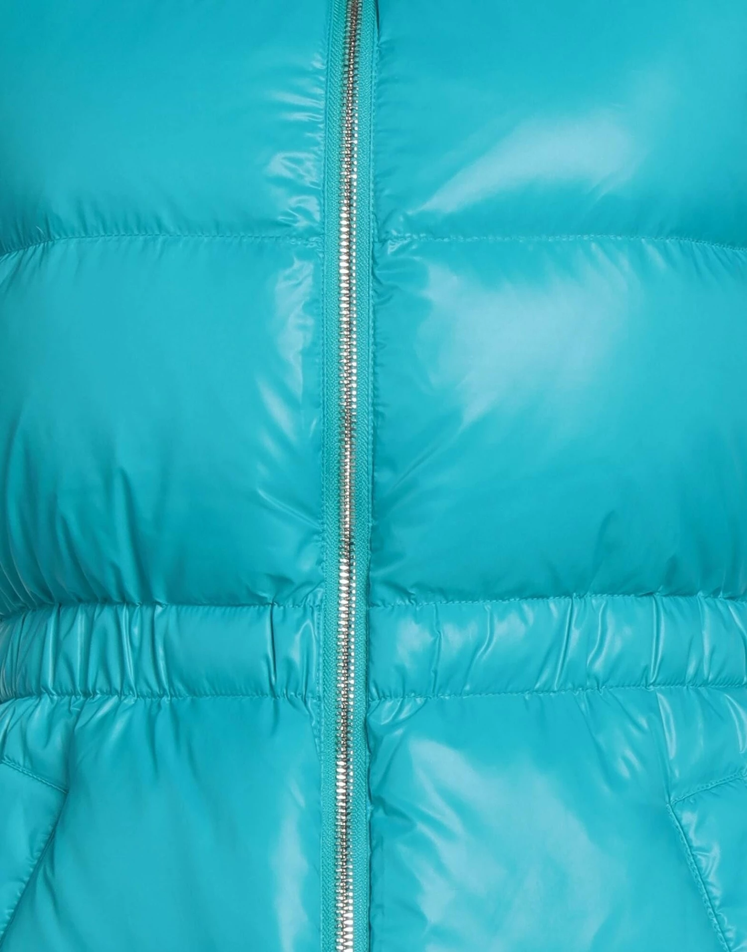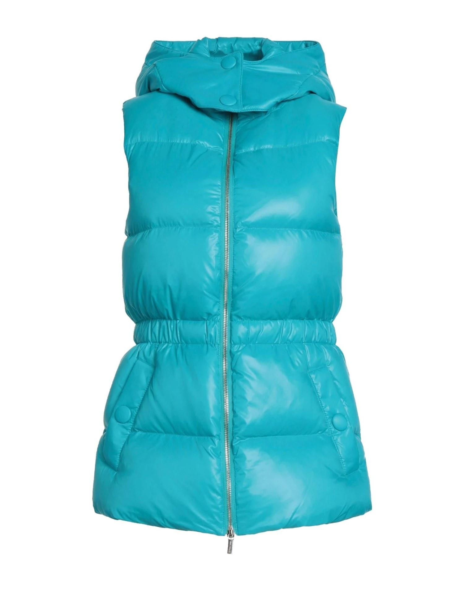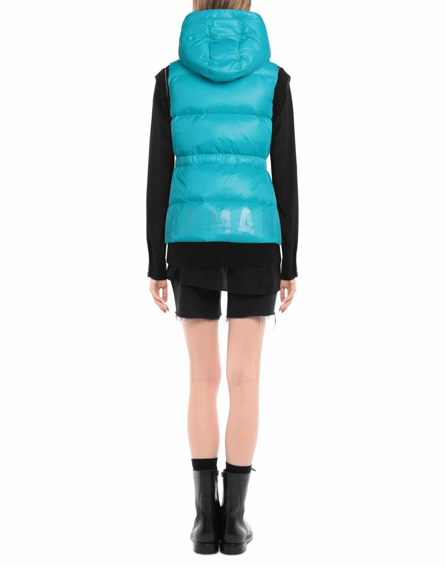 techno fabric, no appliqués, solid color, classic neckline, single-breasted , sleeveless, duck down filling, zipper closure, multipockets, contains non-textile parts of animal origin