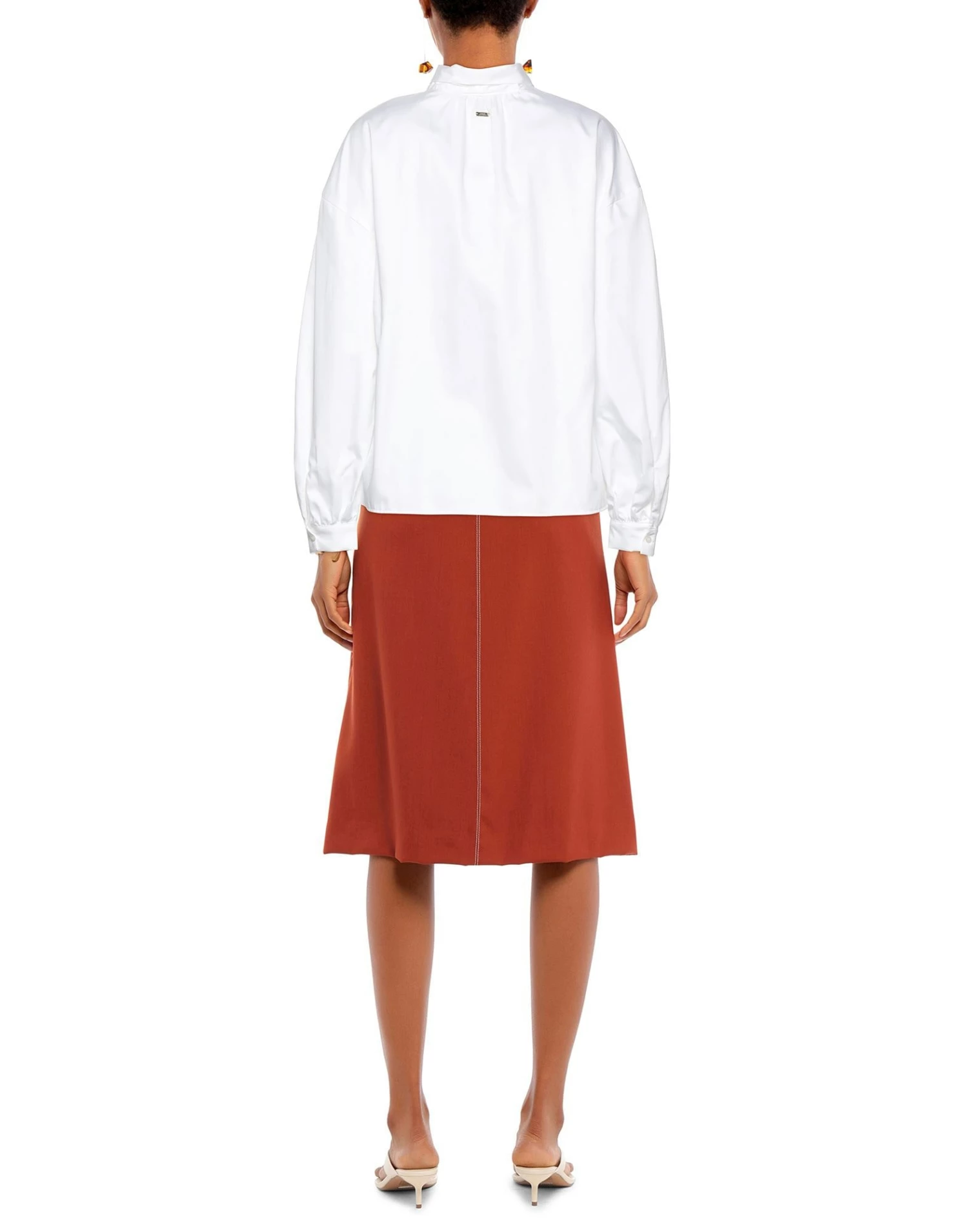 plain weave, no appliqués, solid color, bow collar, long sleeves, button closing, no pockets