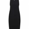 twill, lamé, logo, basic solid color, round collar, sleeveless, no pockets, rear closure, zipper closure, unlined