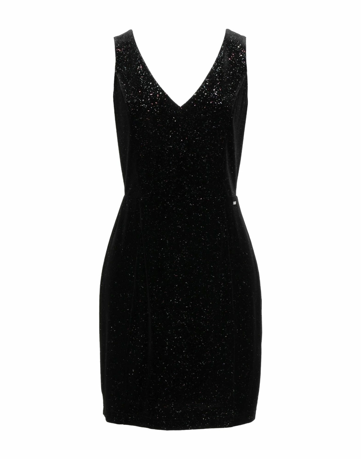chenille, brand logo, glitter, solid color, round collar, sleeveless, no pockets, unlined, stretch
