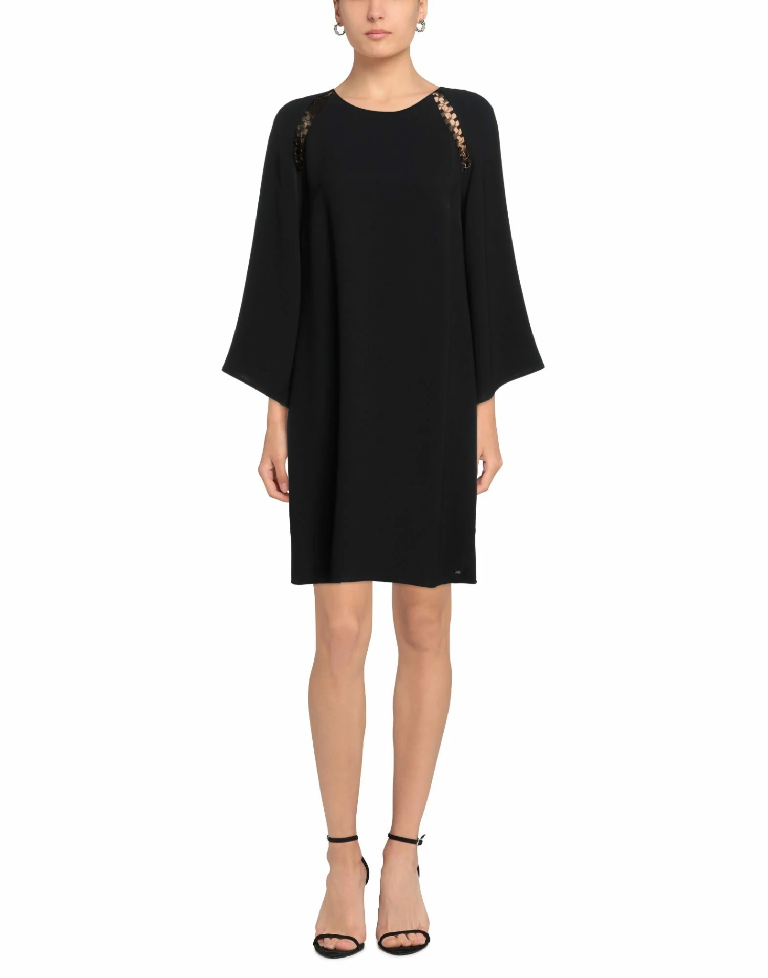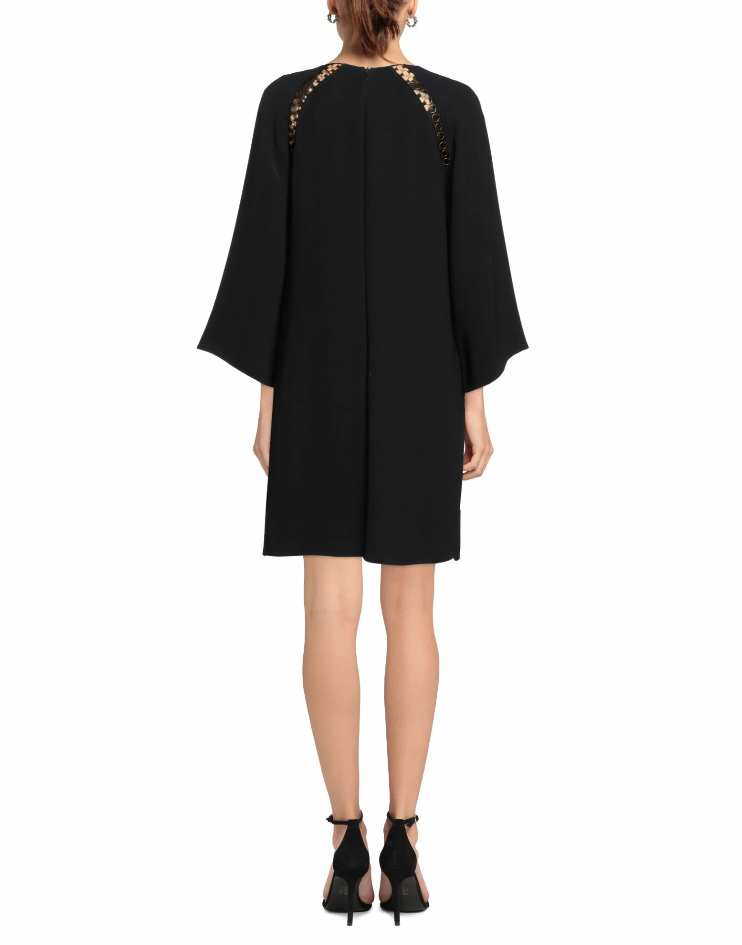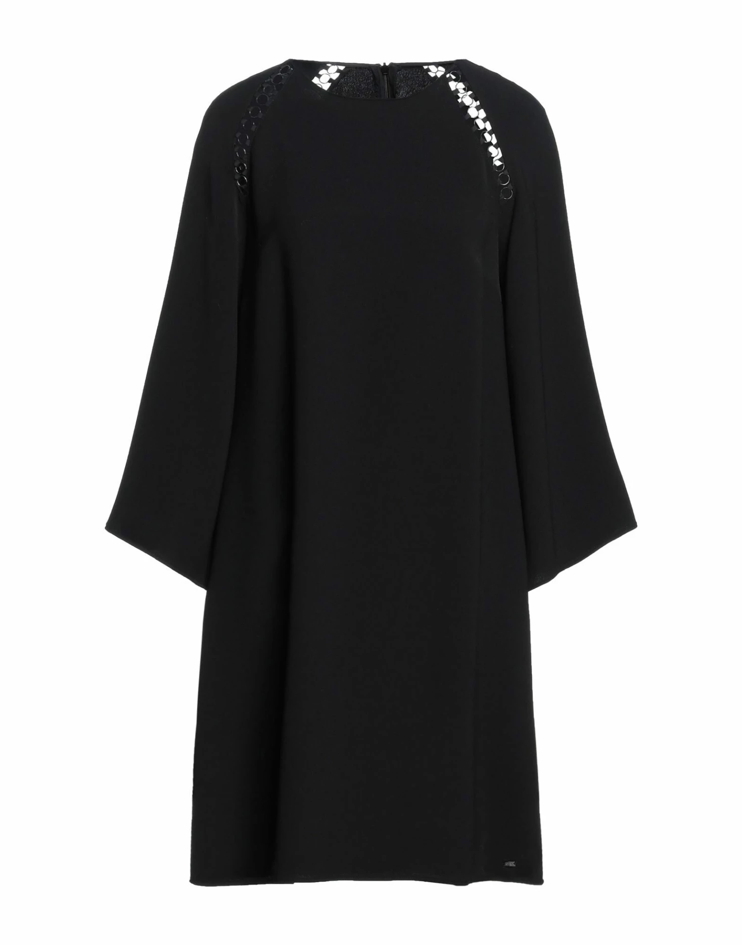 plain weave, brand logo, metal applications, solid color, round collar, 3/4 length sleeves, bell sleeves, unlined, zipper closure, no pockets