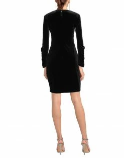 chenille, brand logo, solid color, round collar, long sleeves, unlined, hook-and-eye closure, zipper closure, no pockets, stretch, pencil style