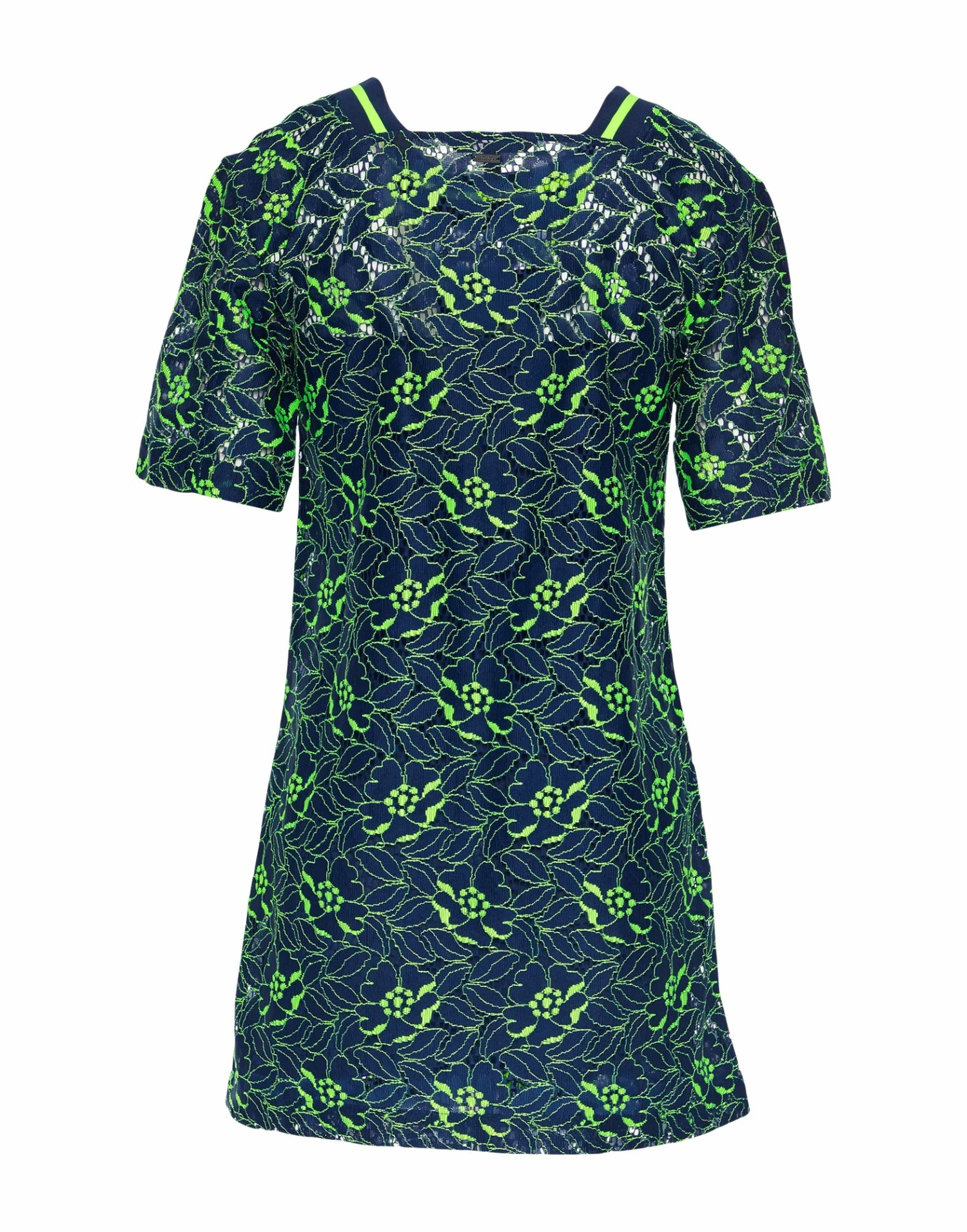lace, logo, floral design, round collar, short sleeves, internal slip