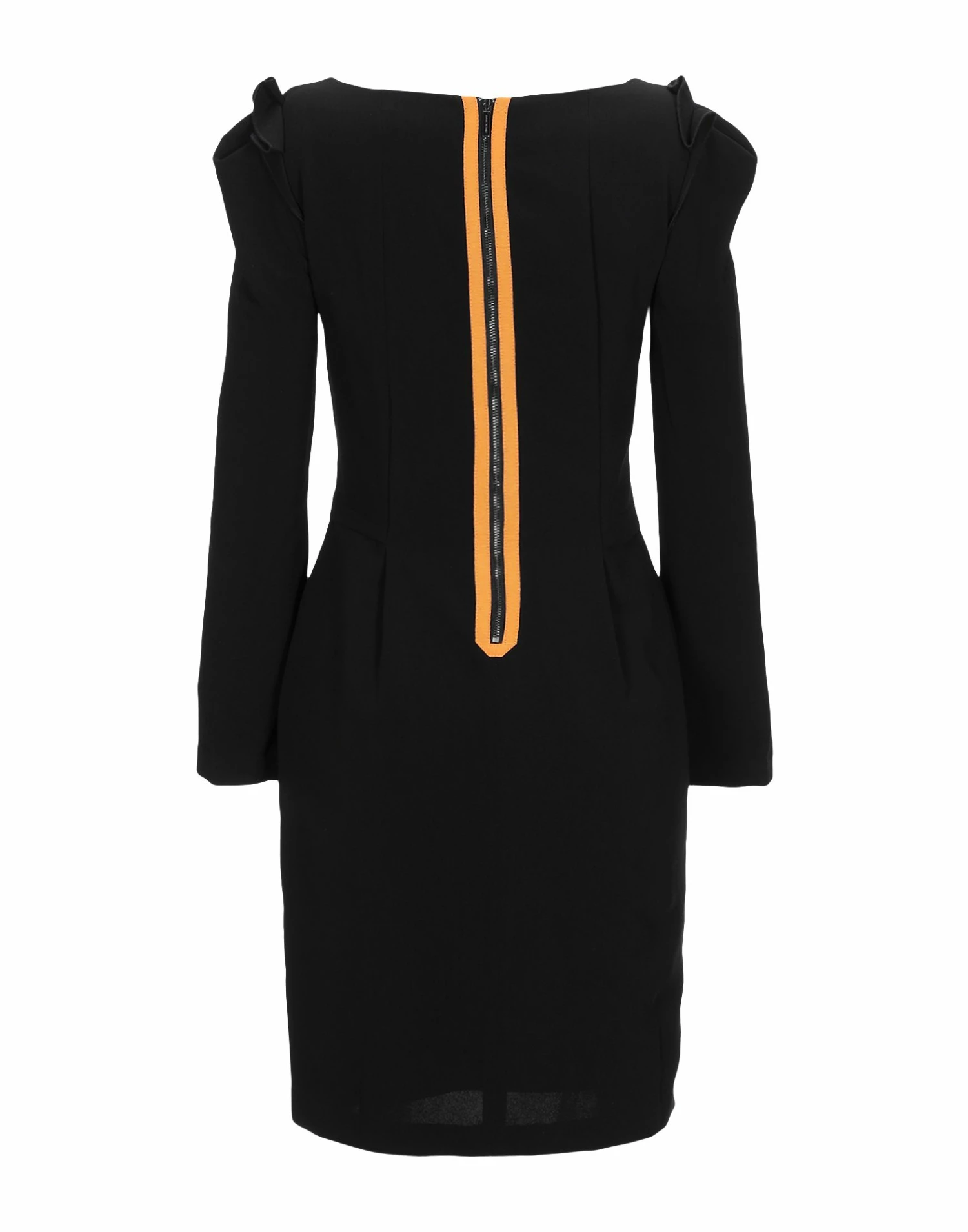 plain weave, logo, basic solid color, round collar, long sleeves, no pockets, rear closure, zip, fully lined, stretch