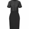 plain weave, brand logo, two-tone, deep neckline, sleeveless, fully lined, zipper closure, no pockets