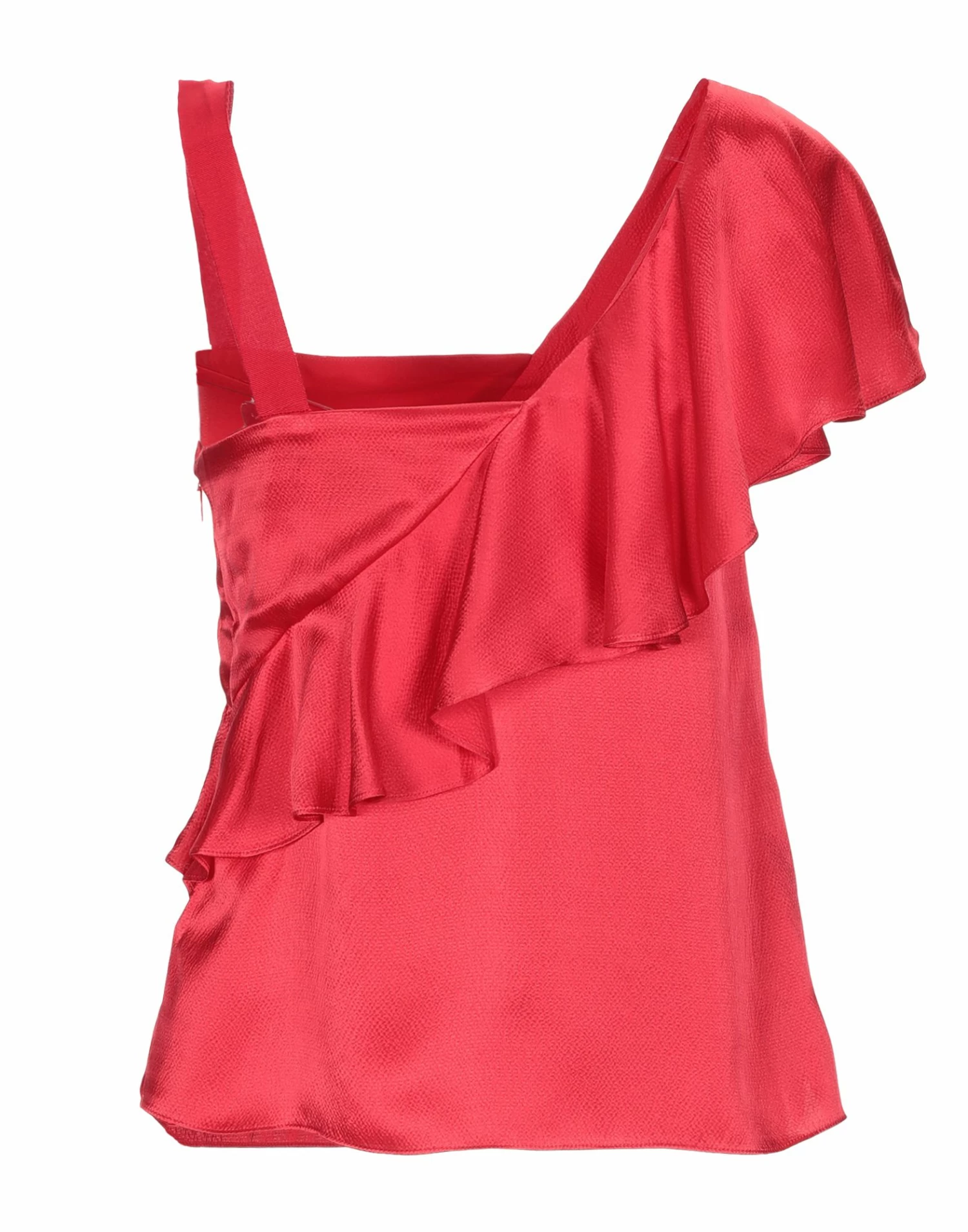 satin, logo, basic solid color, wide neckline, one-shoulder, side closure, zip, no pockets