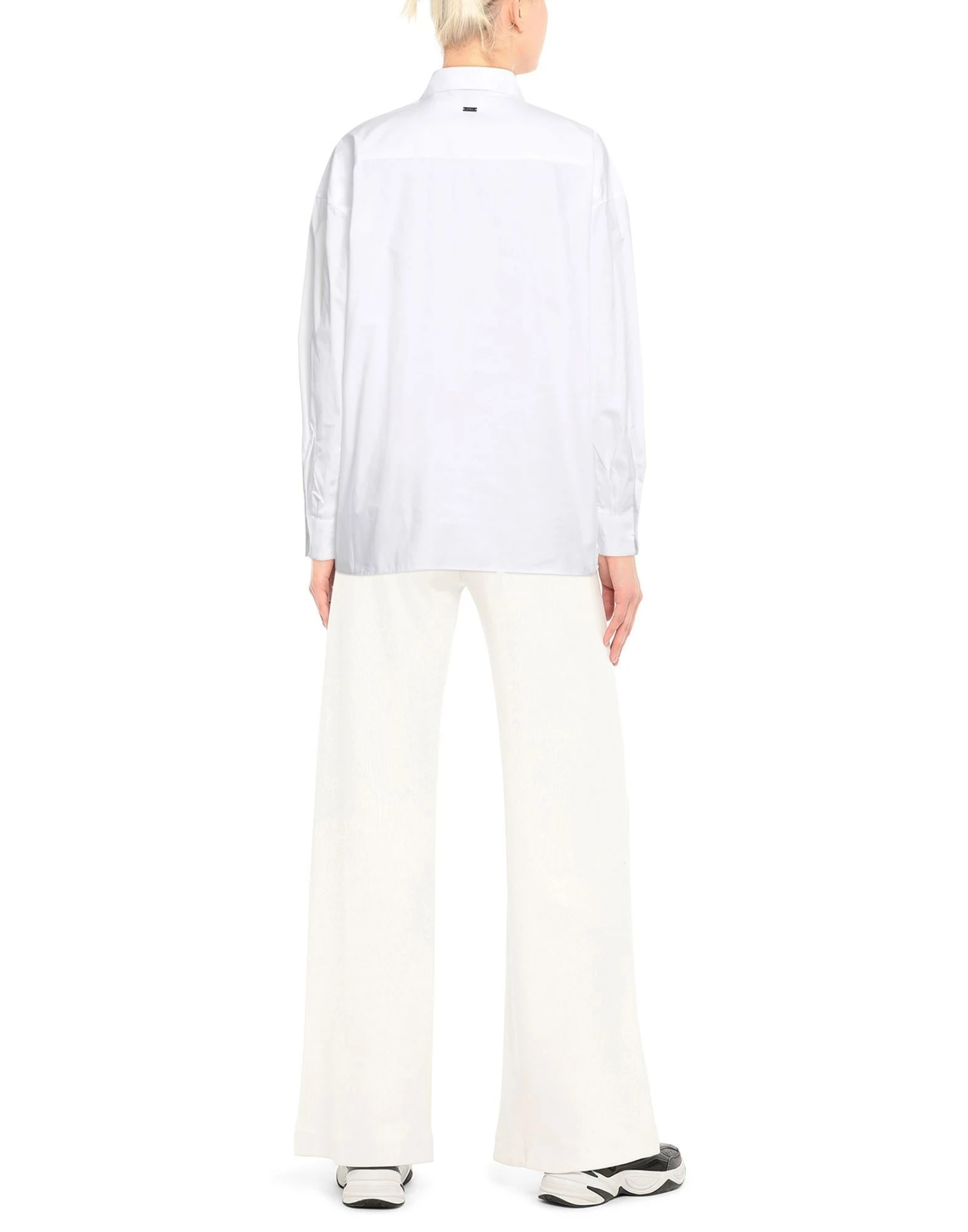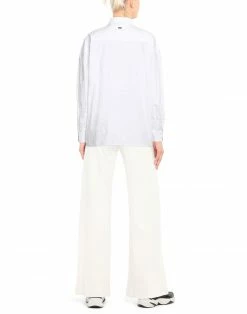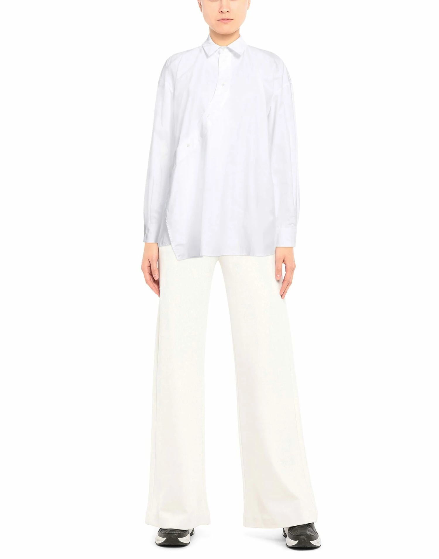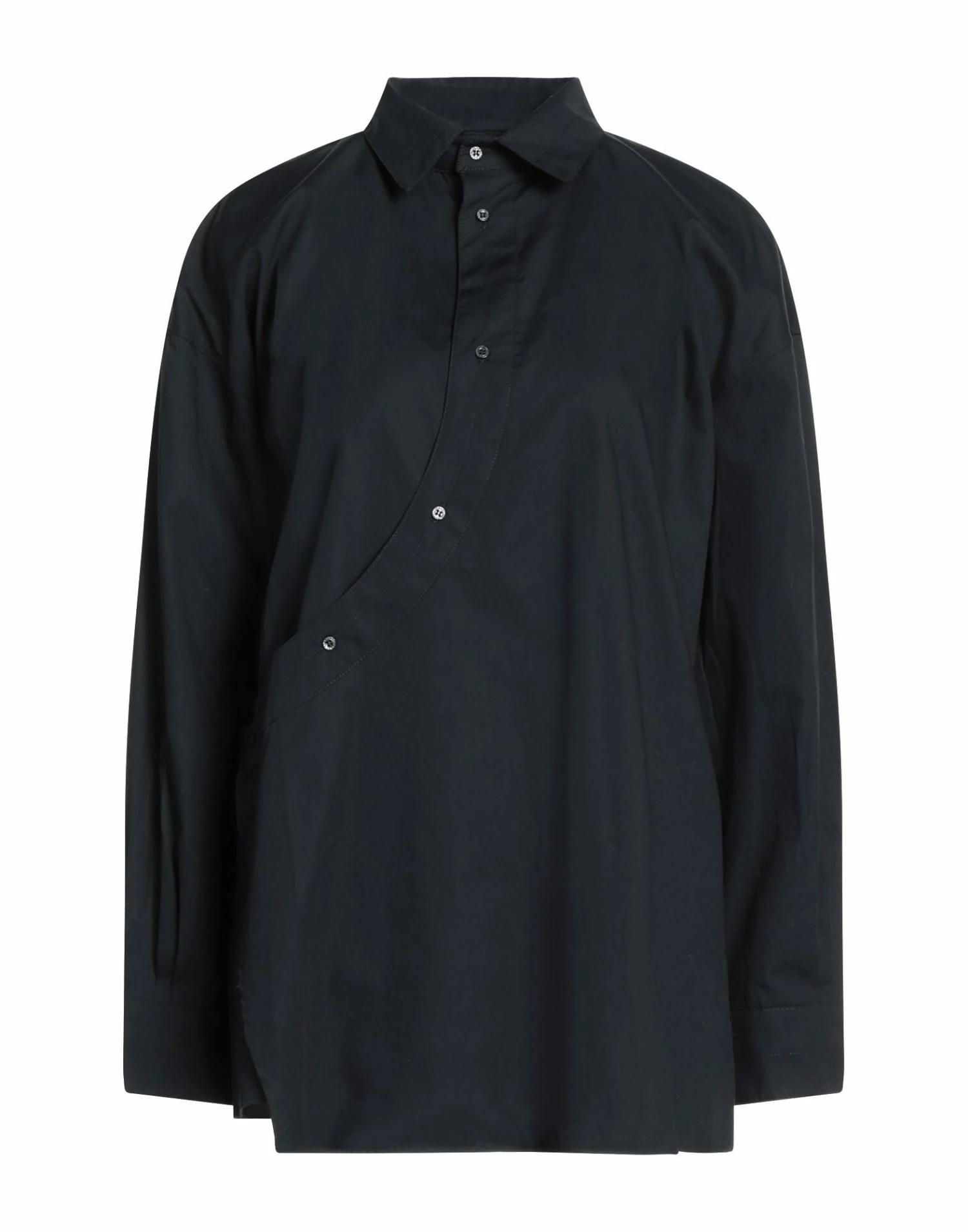 plain weave, brand logo, solid color, long sleeves, classic neckline, button closing, no pockets
