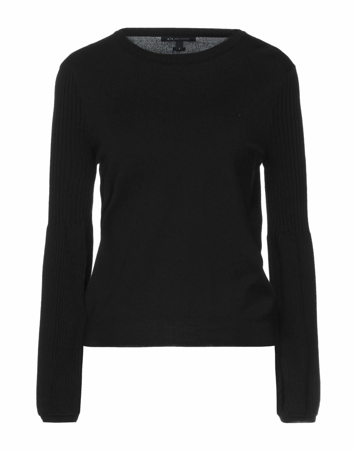 knitted, brand logo, lightweight knit, round collar, solid color, long sleeves, no pockets