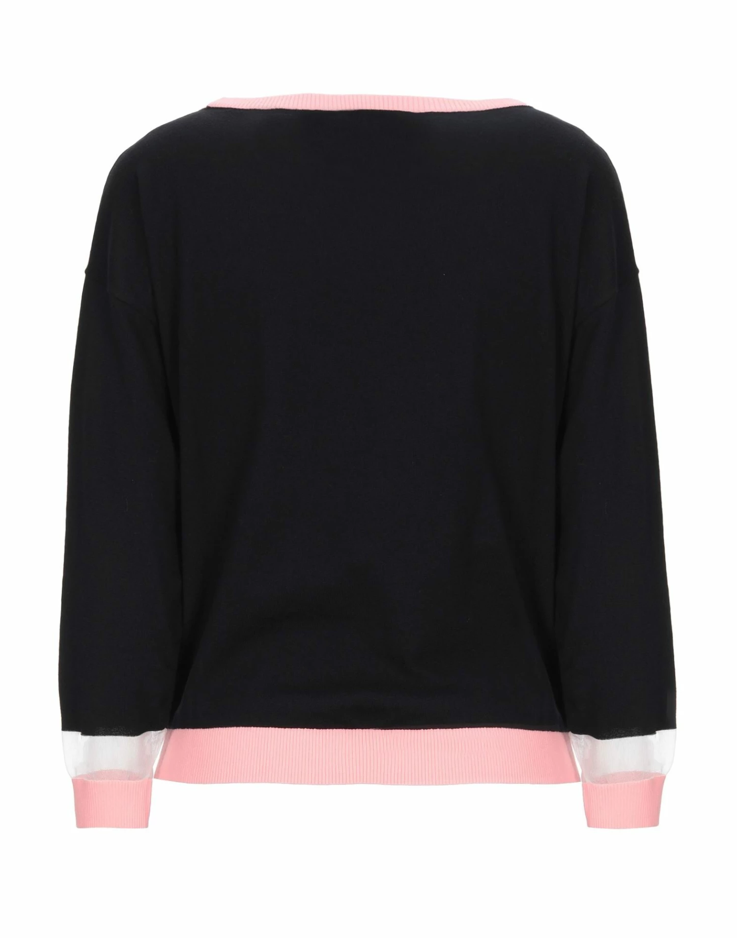 knitted, logo, rhinestones, lightweight knit, round collar, solid color, long sleeves, no pockets
