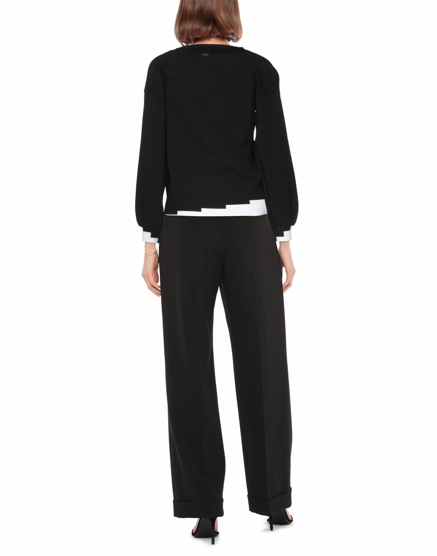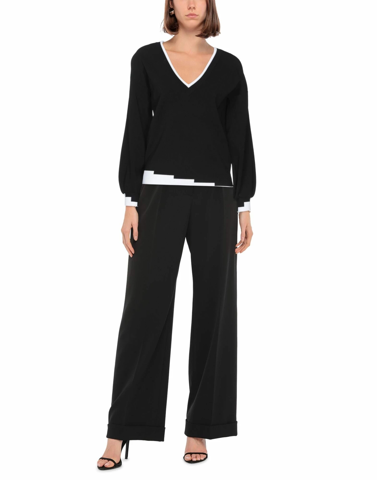 knitted, lightweight knit, brand logo, two-tone, v-neck, long sleeves, no pockets