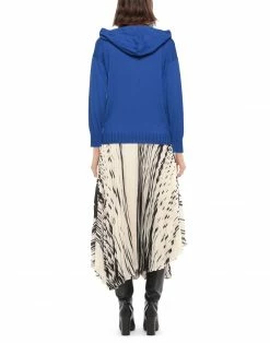 knitted, logo, lightweight knit, hooded collar, solid color, long sleeves, no pockets