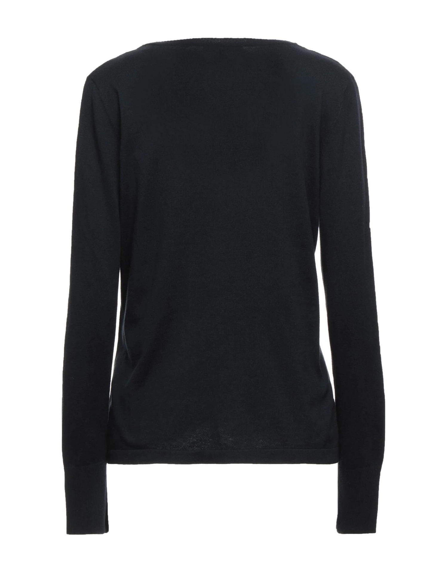 knitted, logo, lightweight knit, v-neck, basic solid color, long sleeves, no pockets
