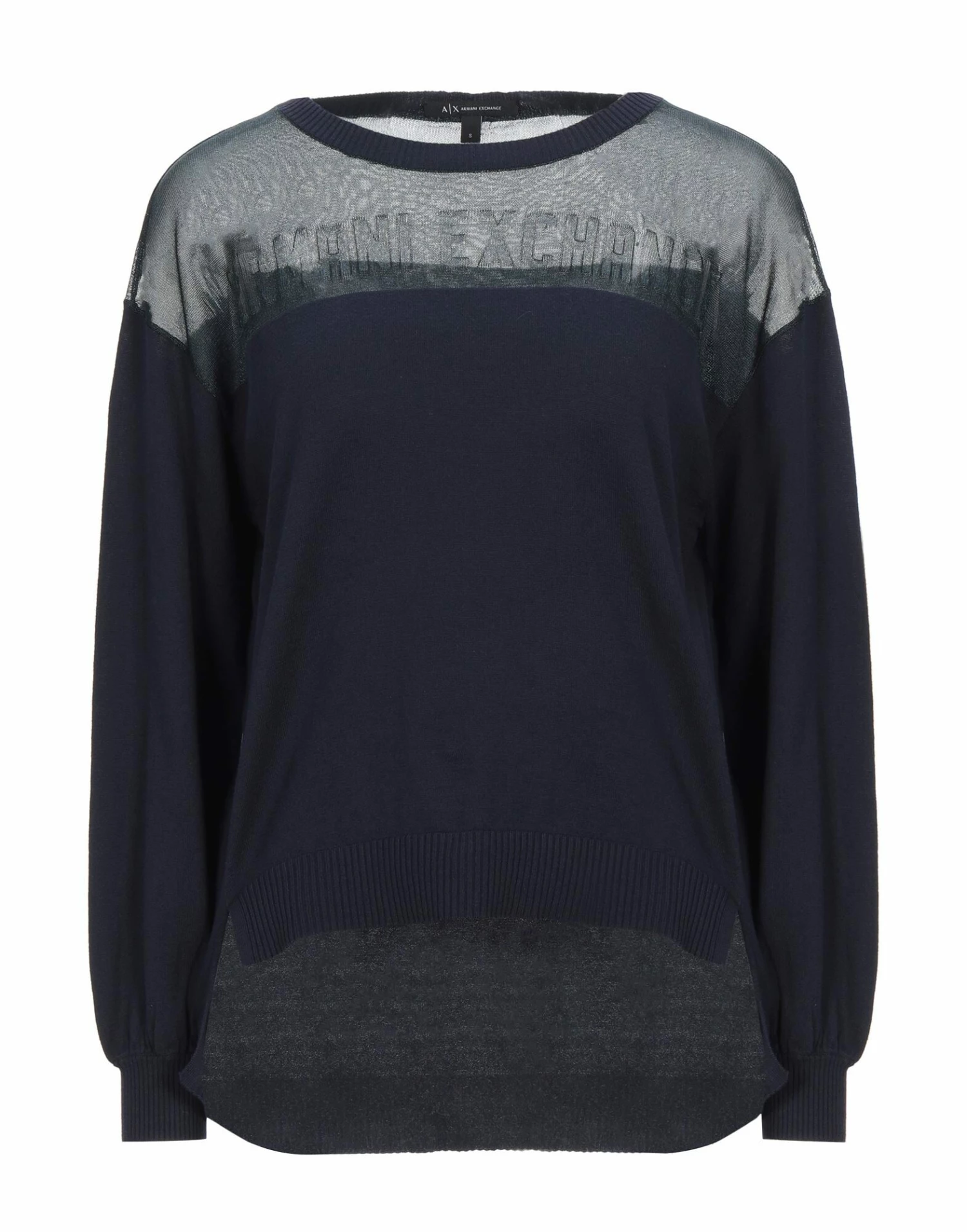 knitted, logo, lightweight knit, round collar, basic solid color, long sleeves, no pockets, side slit hemline
