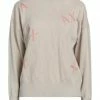 knitted, lightweight knit, brand logo, solid color, round collar, long sleeves, no pockets