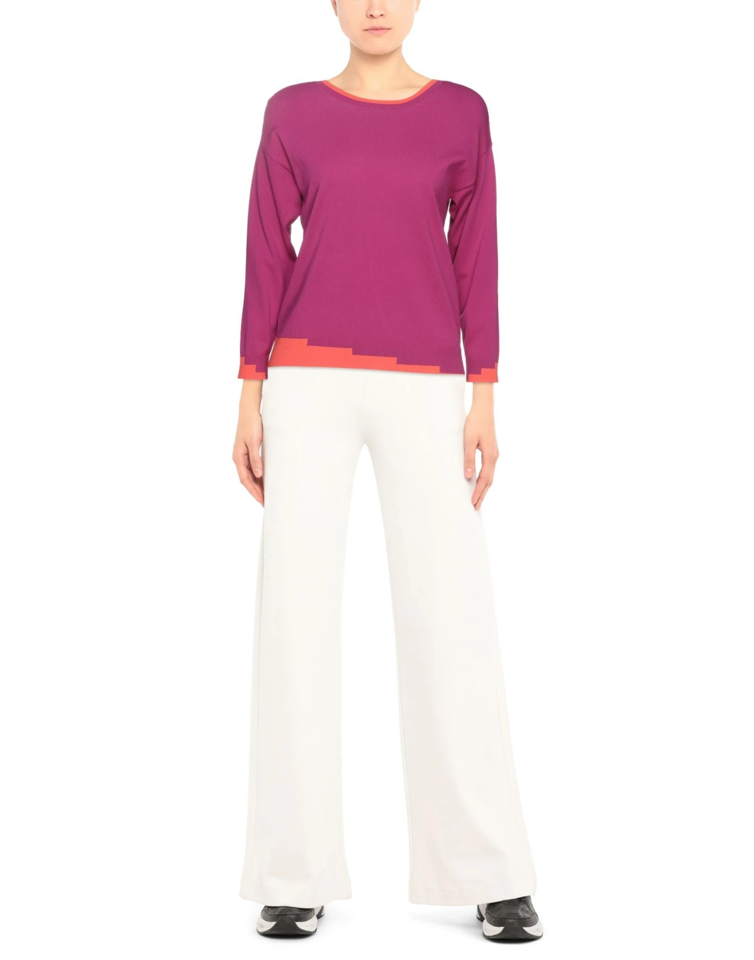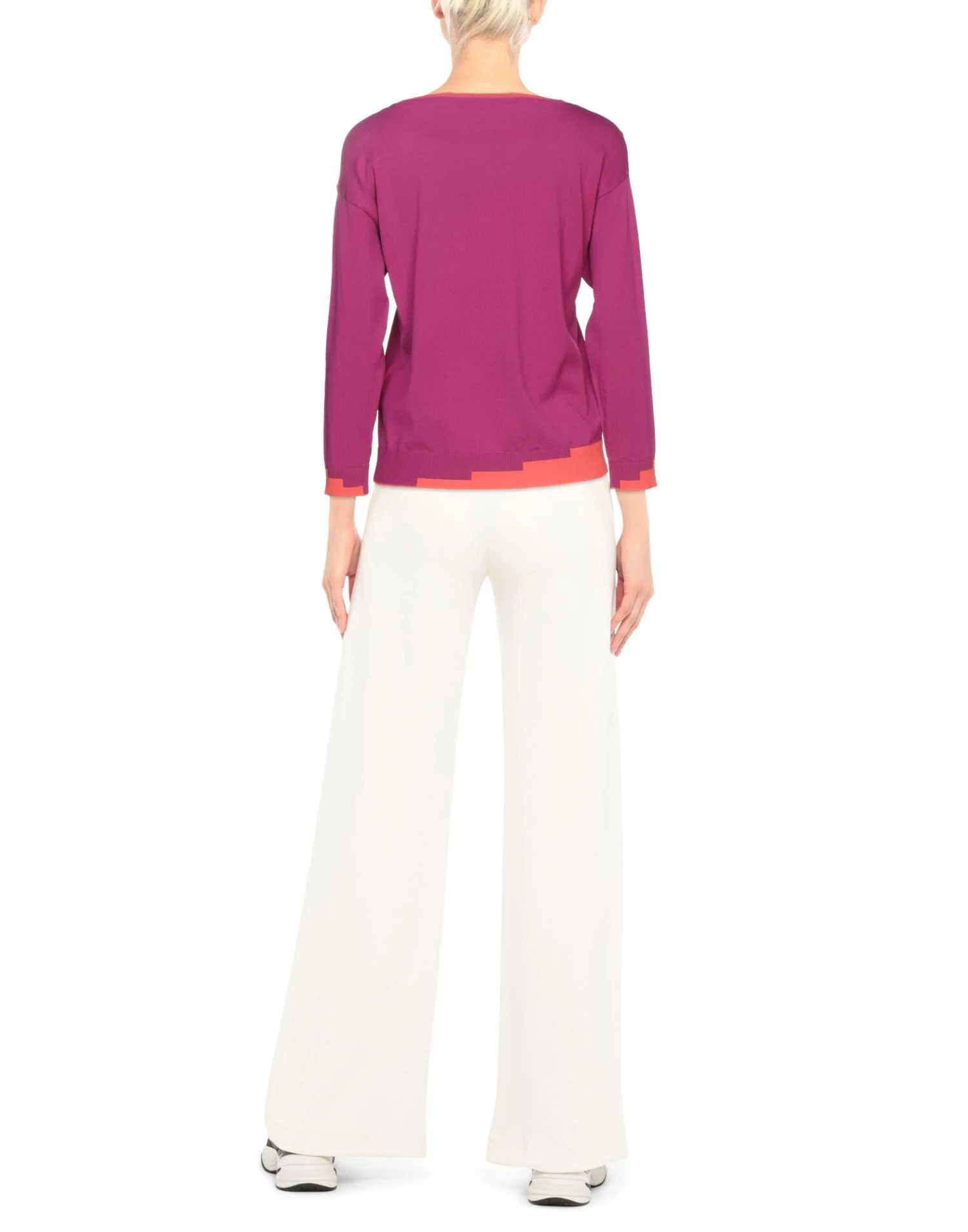 knitted, lightweight knit, brand logo, two-tone, round collar, long sleeves, no pockets