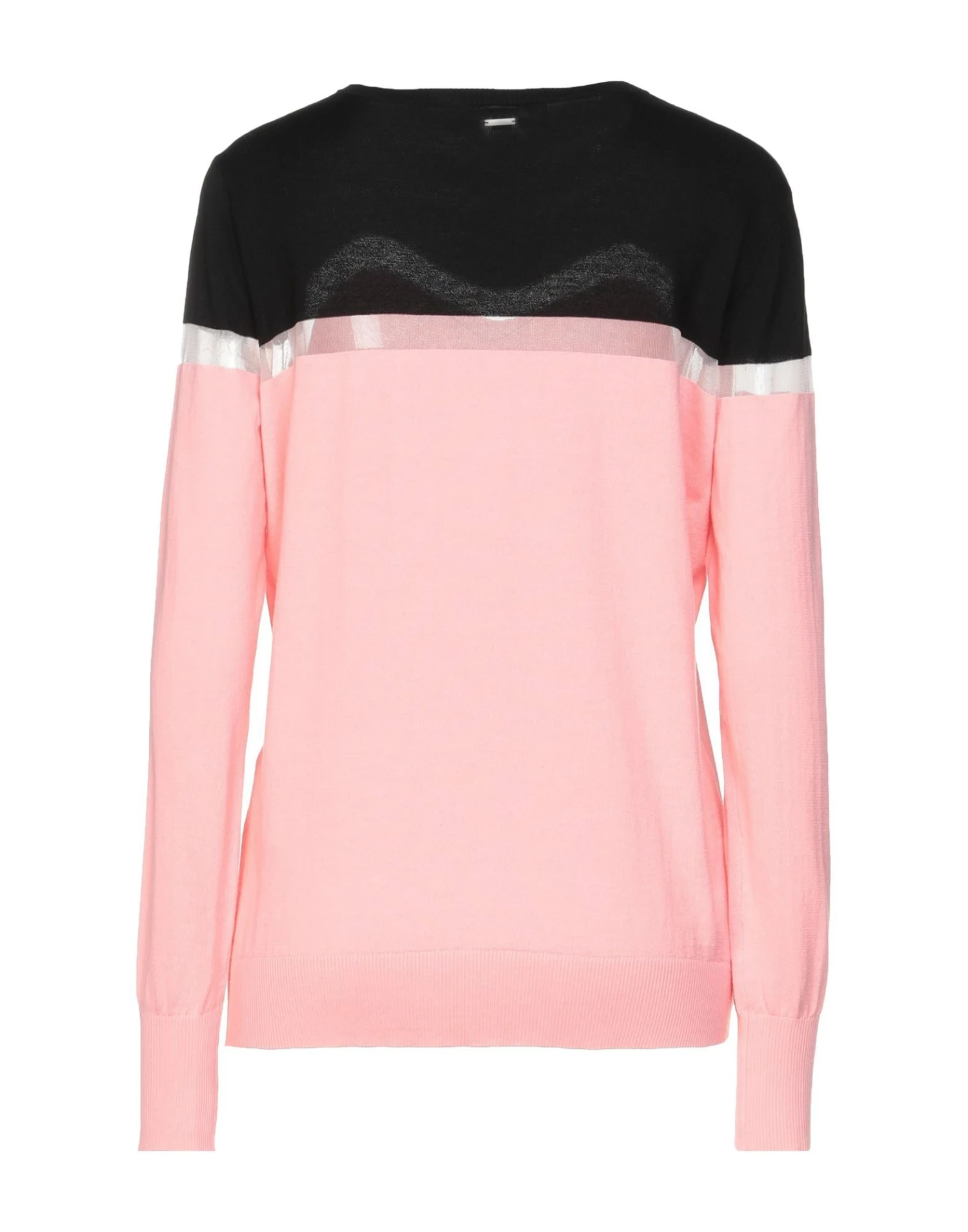 knitted, logo, lightweight knit, round collar, multicolor pattern, long sleeves, no pockets