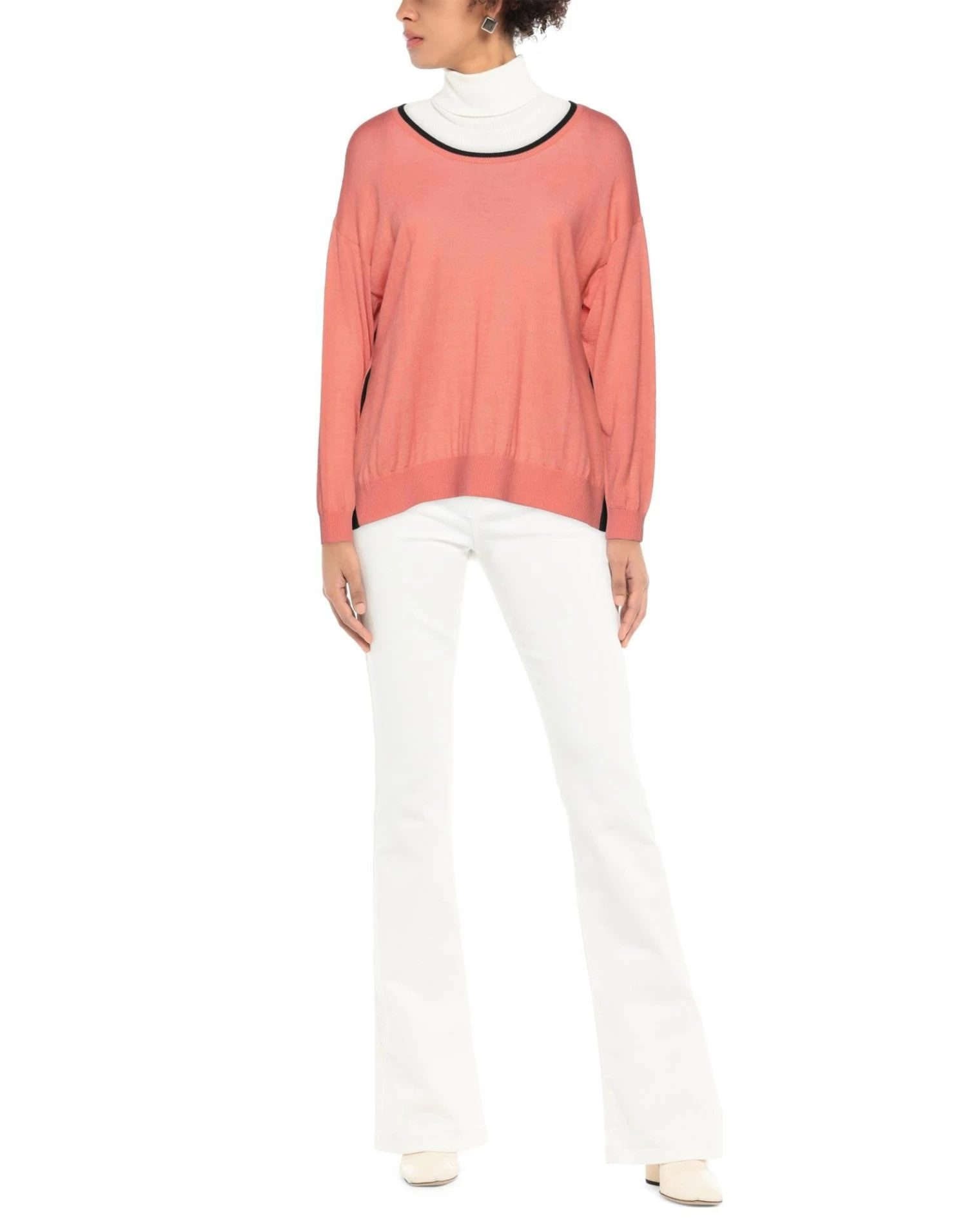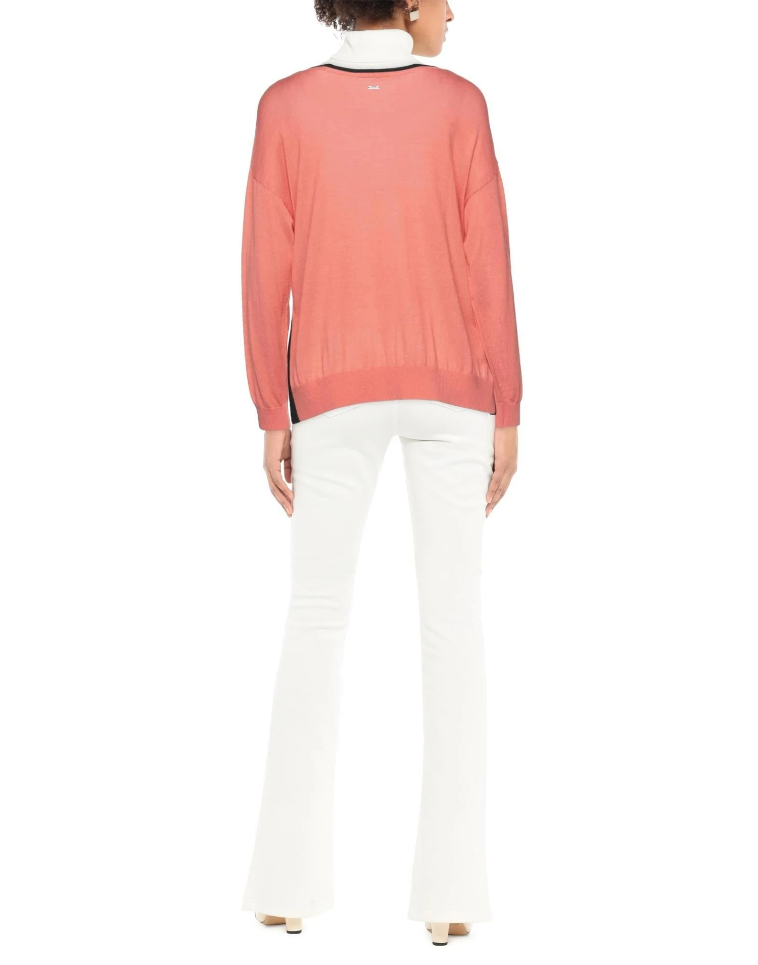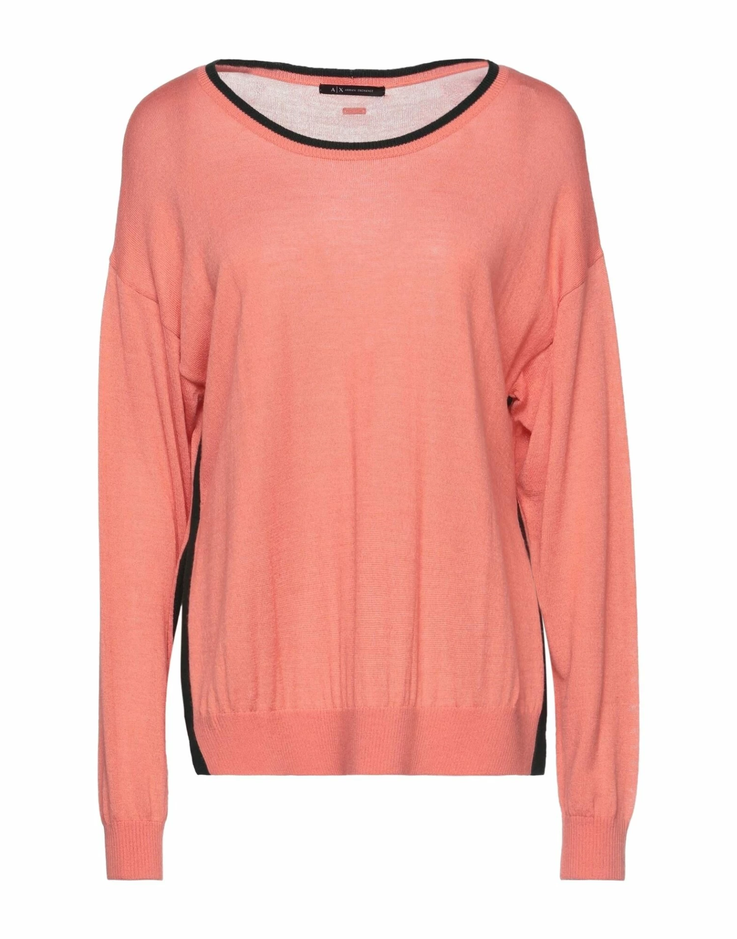 knitted, logo, side seam stripes, solid color, round collar, lightweight sweater, long sleeves, no pockets, side slit hemline