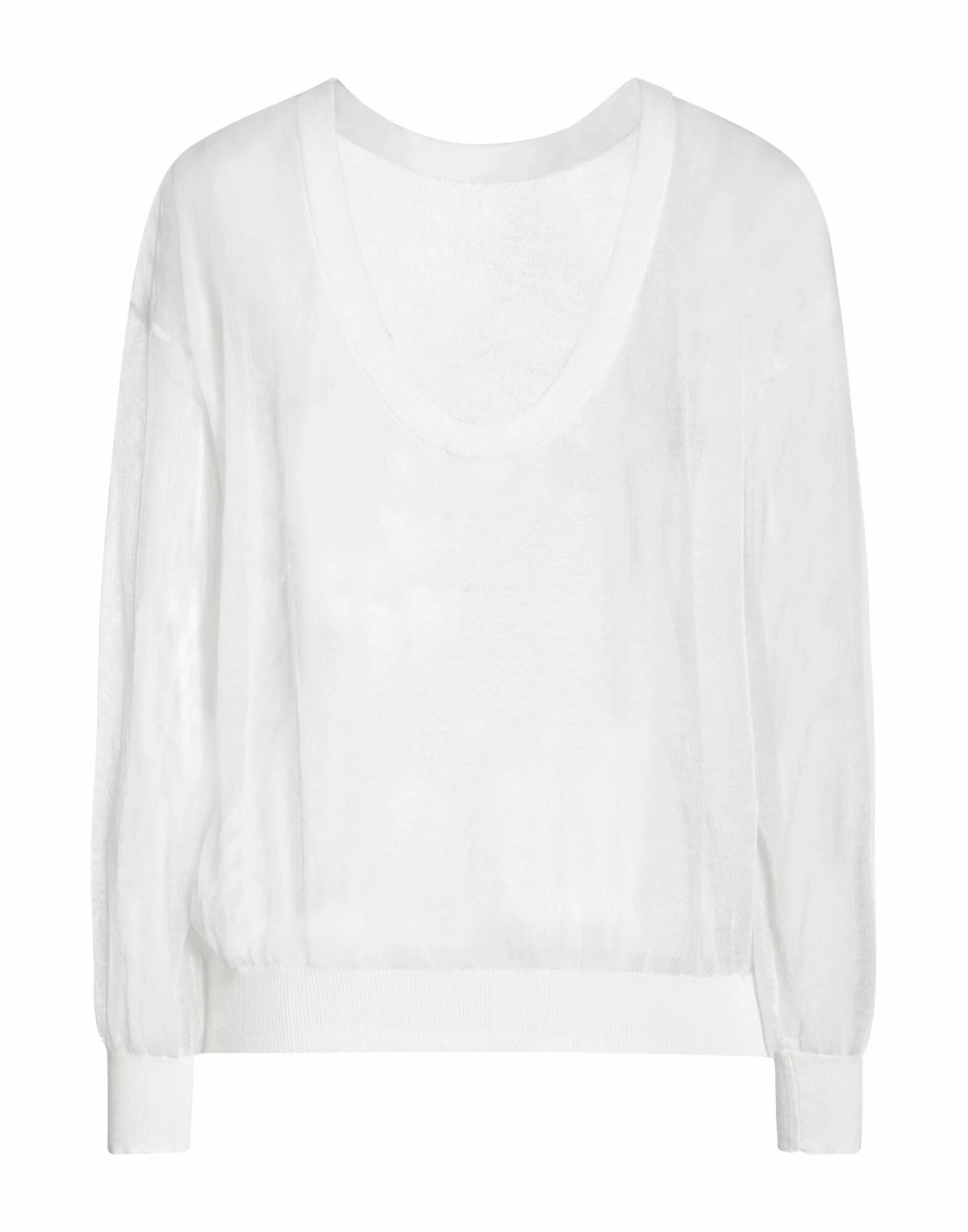 knitted, lightweight knit, brand logo, solid color, v-neck, long sleeves, no pockets