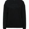 sweatshirt fleece, glitter print, brand logo, solid color with print, round collar, long sleeves, no pockets, french terry lining