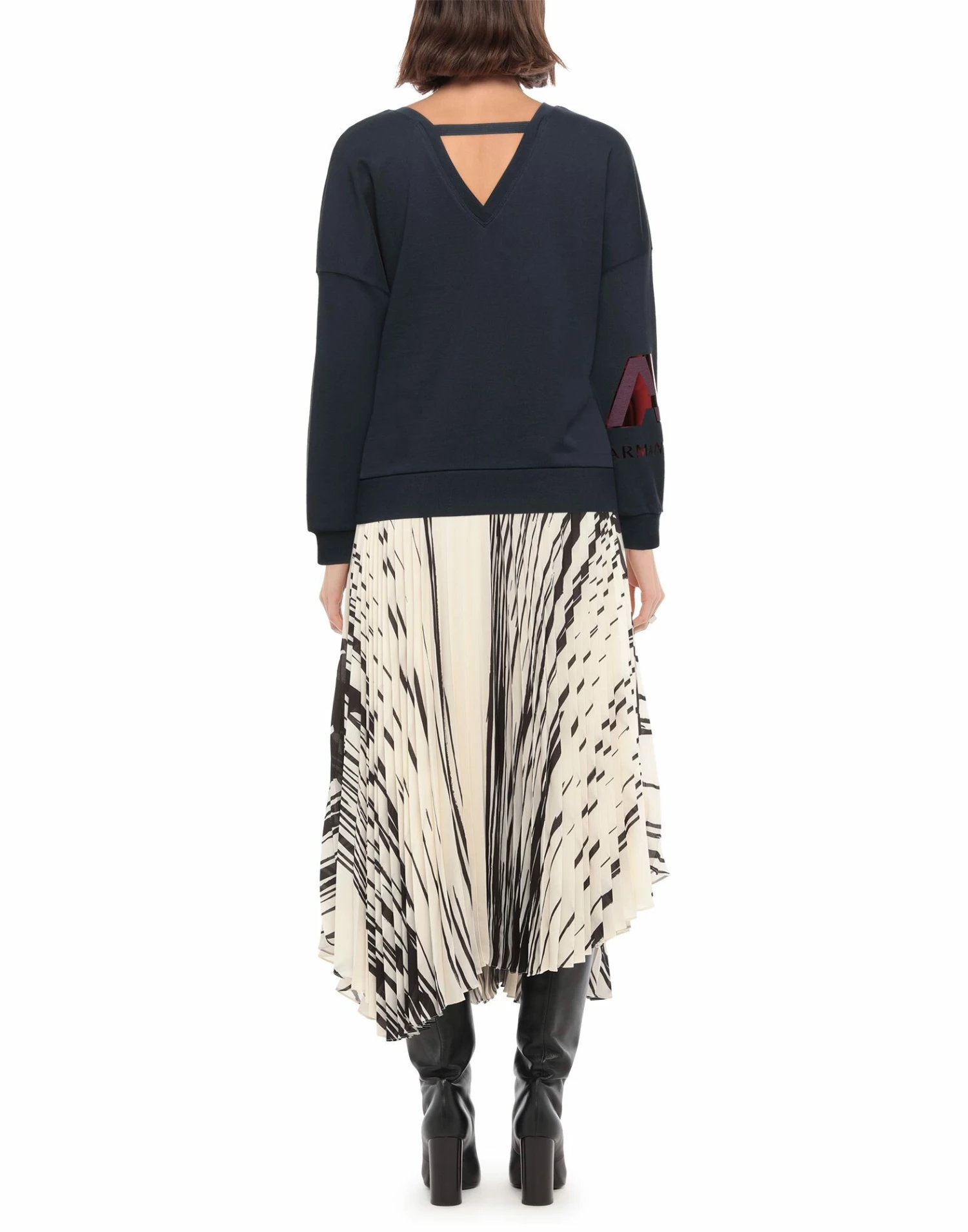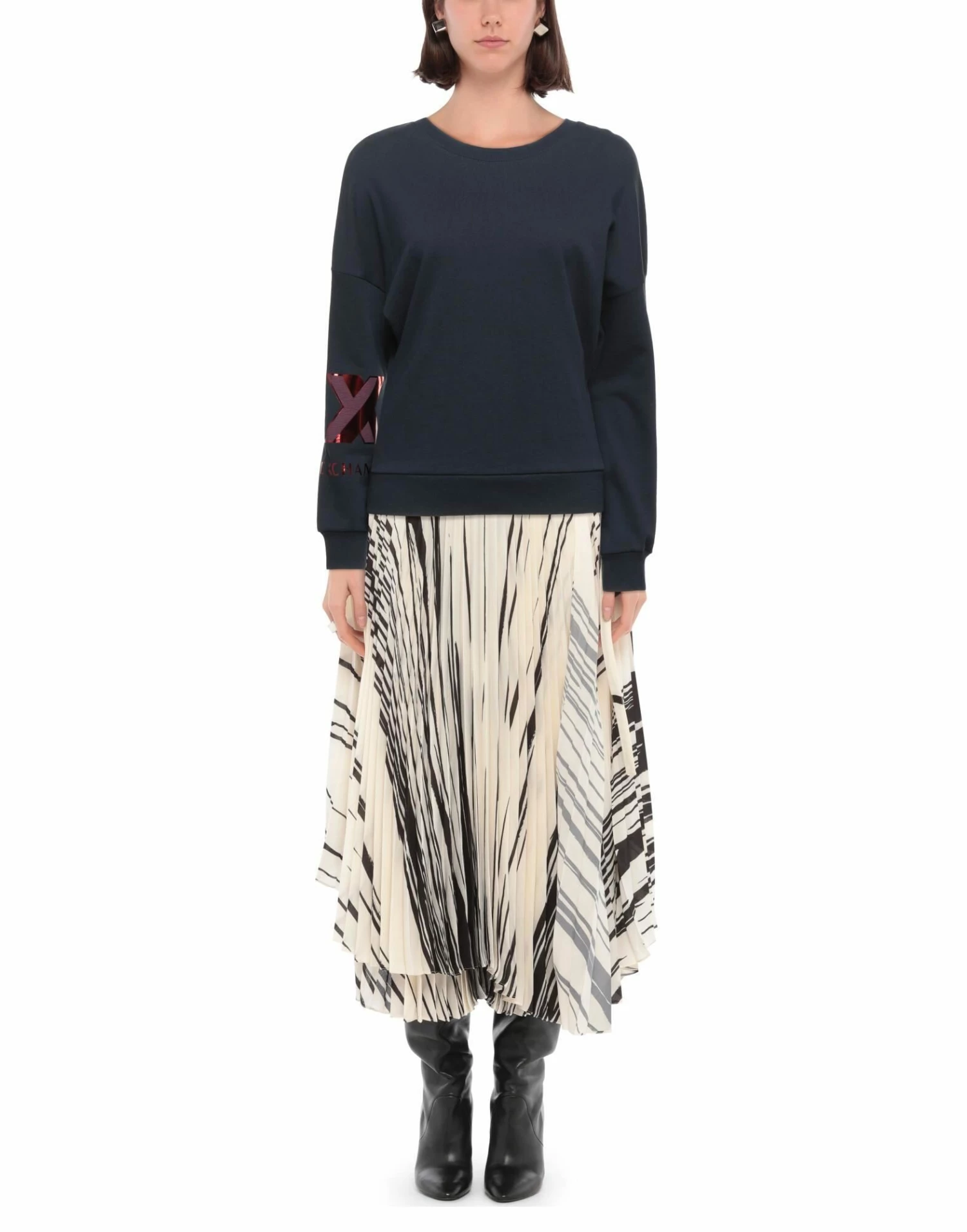 sweatshirt fleece, brand logo, solid colour with appliqués, wide neckline, long sleeves, no pockets, french terry lining