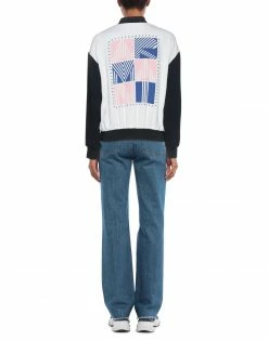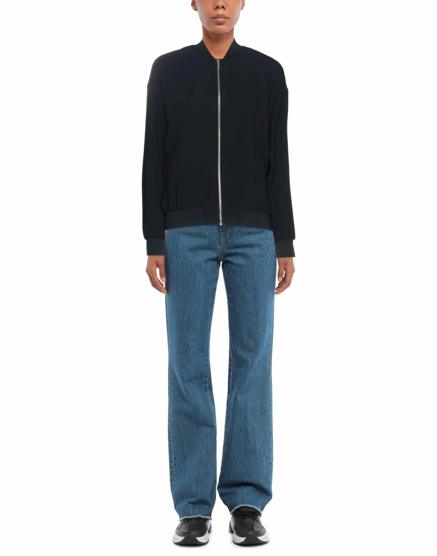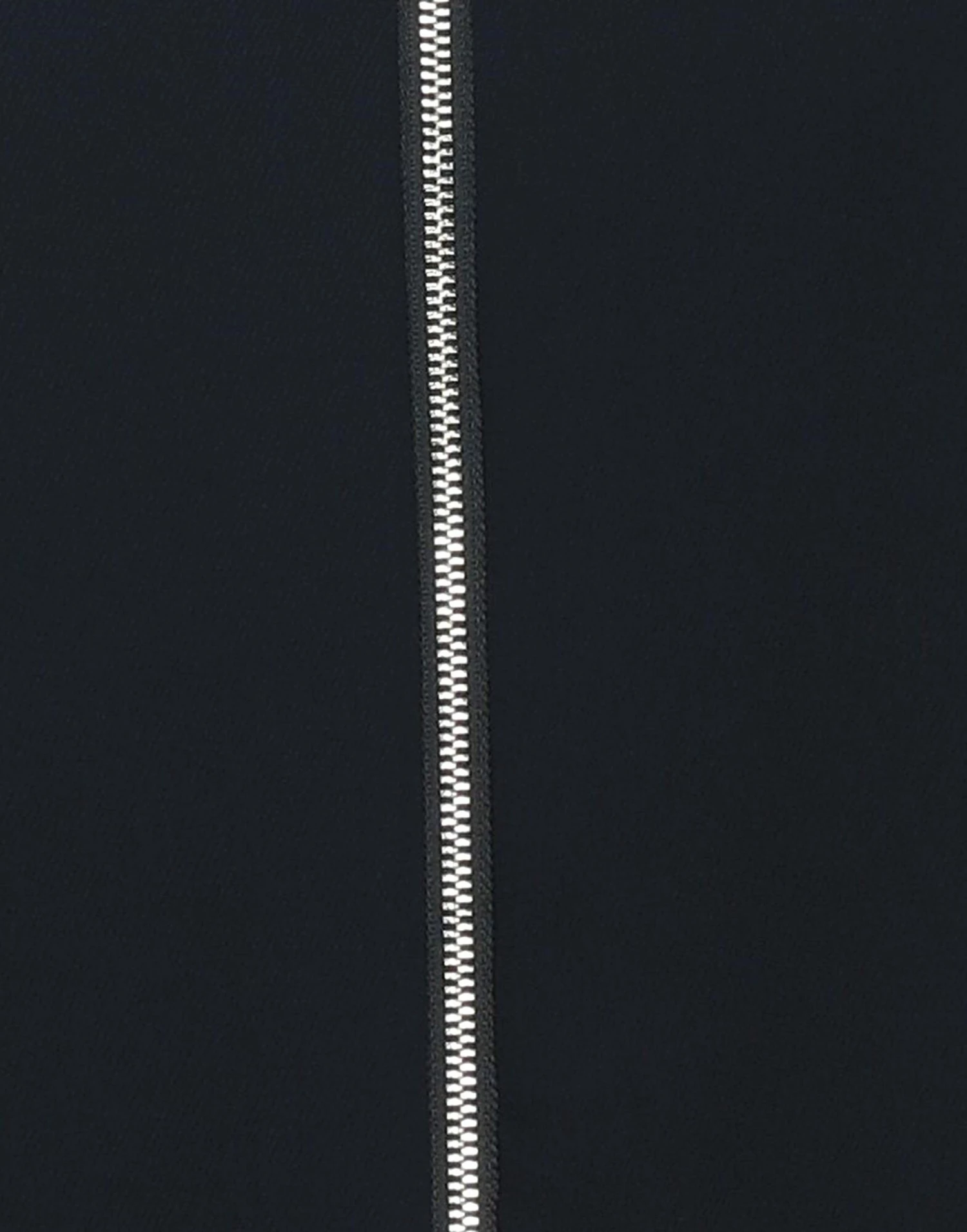 crepe, print, brand logo, solid color, round collar, long sleeves, fully lined, zipper closure, multipockets