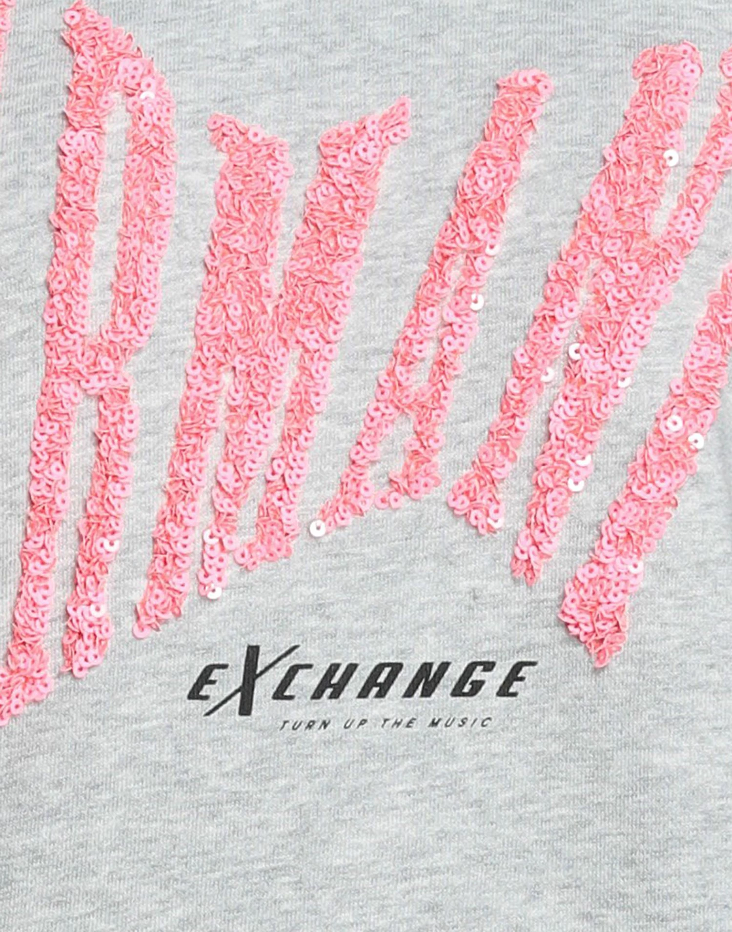 sequins, brand logo, solid colour with appliqués, round collar, long sleeves, french terry lining, no pockets, sweatshirt fleece