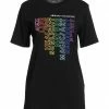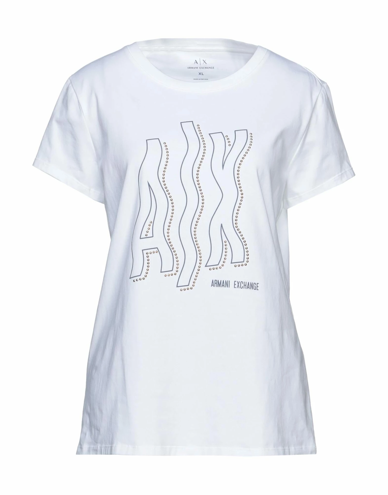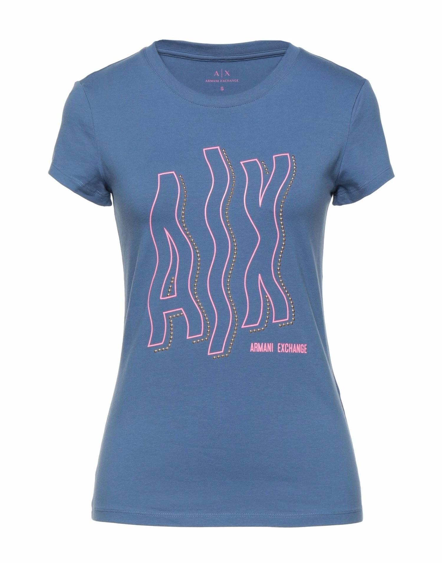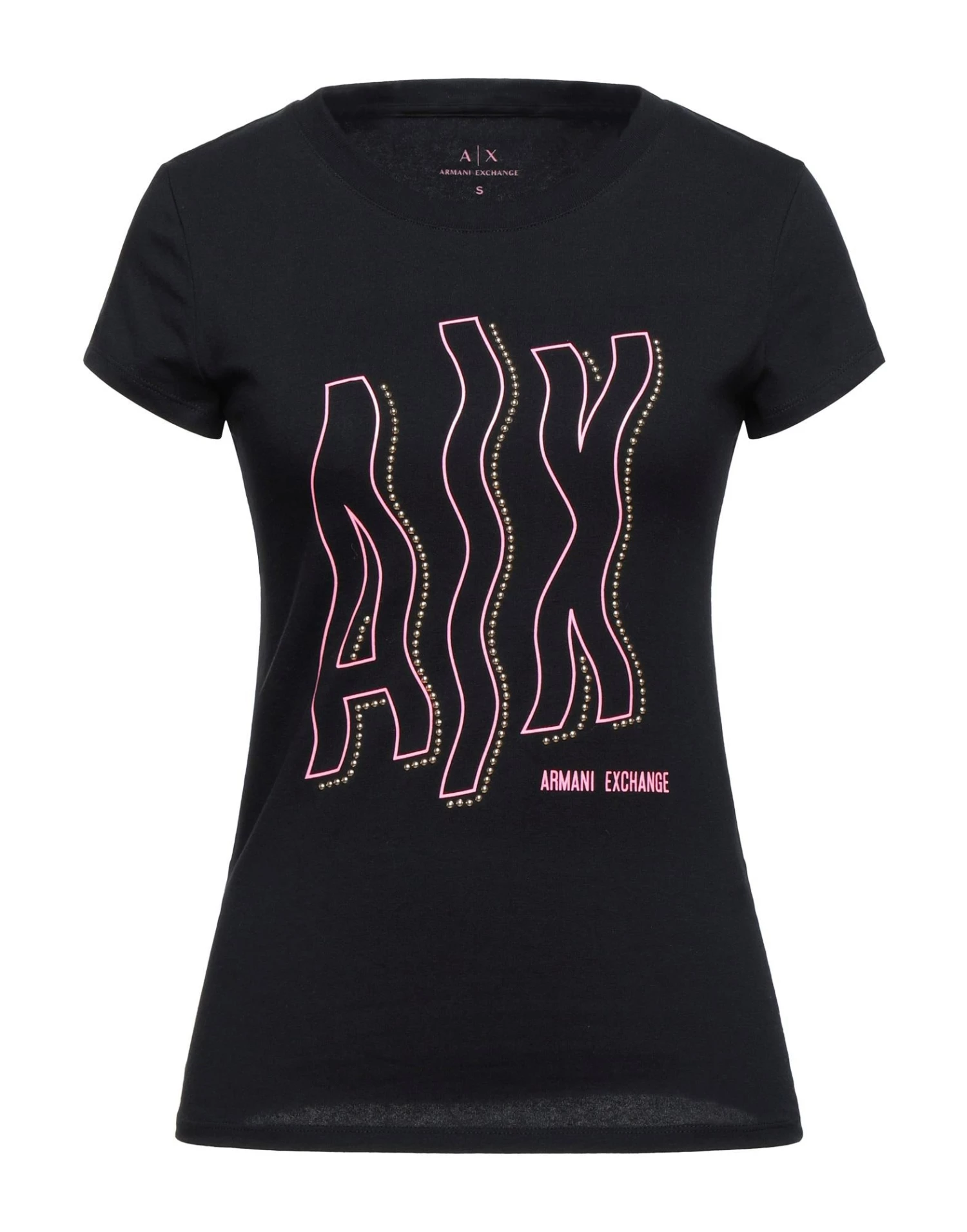 jersey, print, metal applications, solid colour with appliqués, round collar, short sleeves, no pockets, stretch
