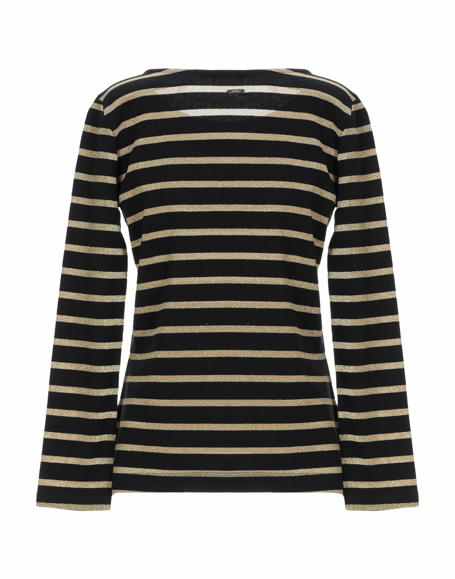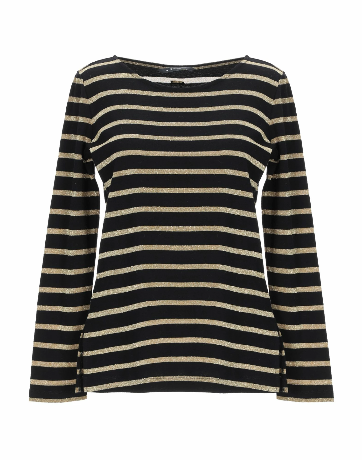 jersey, lamé, logo, stripes, round collar, long sleeves, no pockets