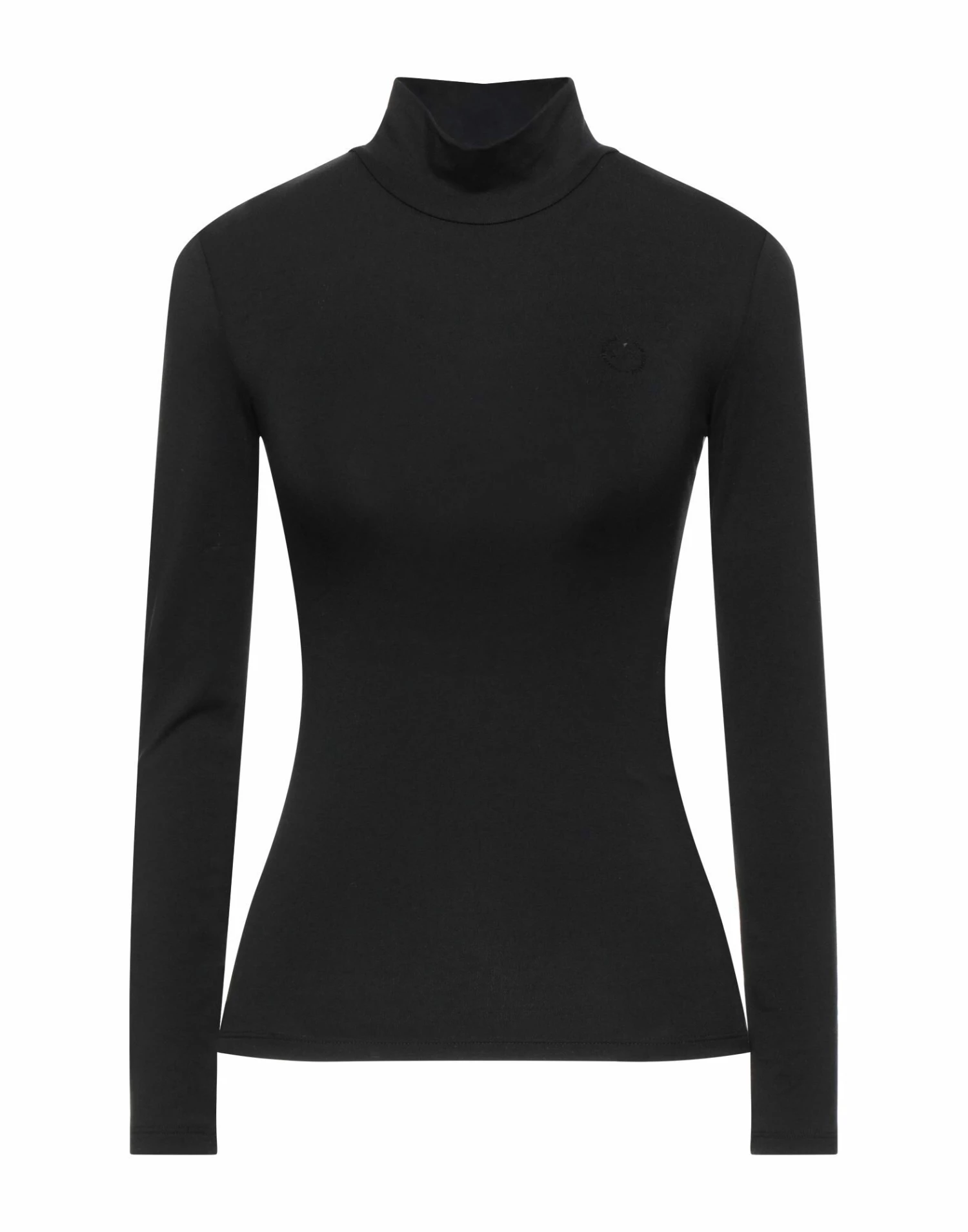 jersey, embroidered detailing, brand logo, solid color, turtleneck, long sleeves, stretch