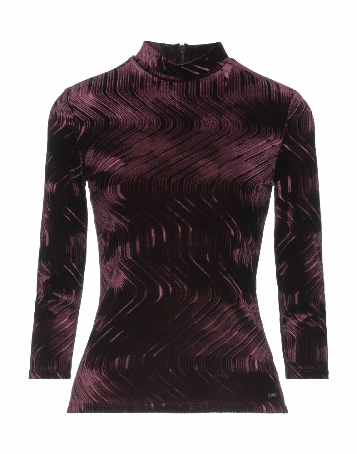chenille, logo, solid color, turtleneck, long sleeves, rear closure, zipper closure, no pockets, stretch