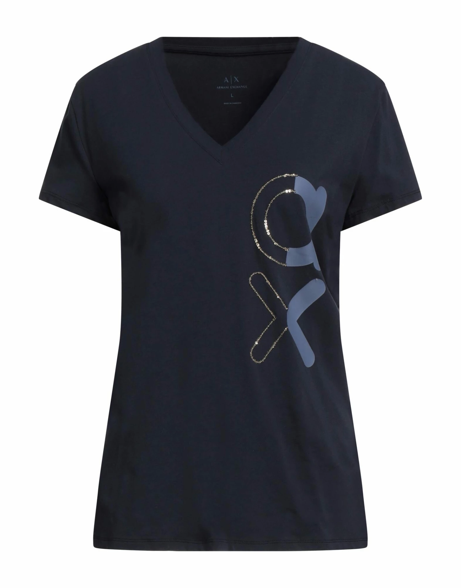 jersey, sequins, brand logo, solid color with print, v-neck, short sleeves, no pockets, stretch