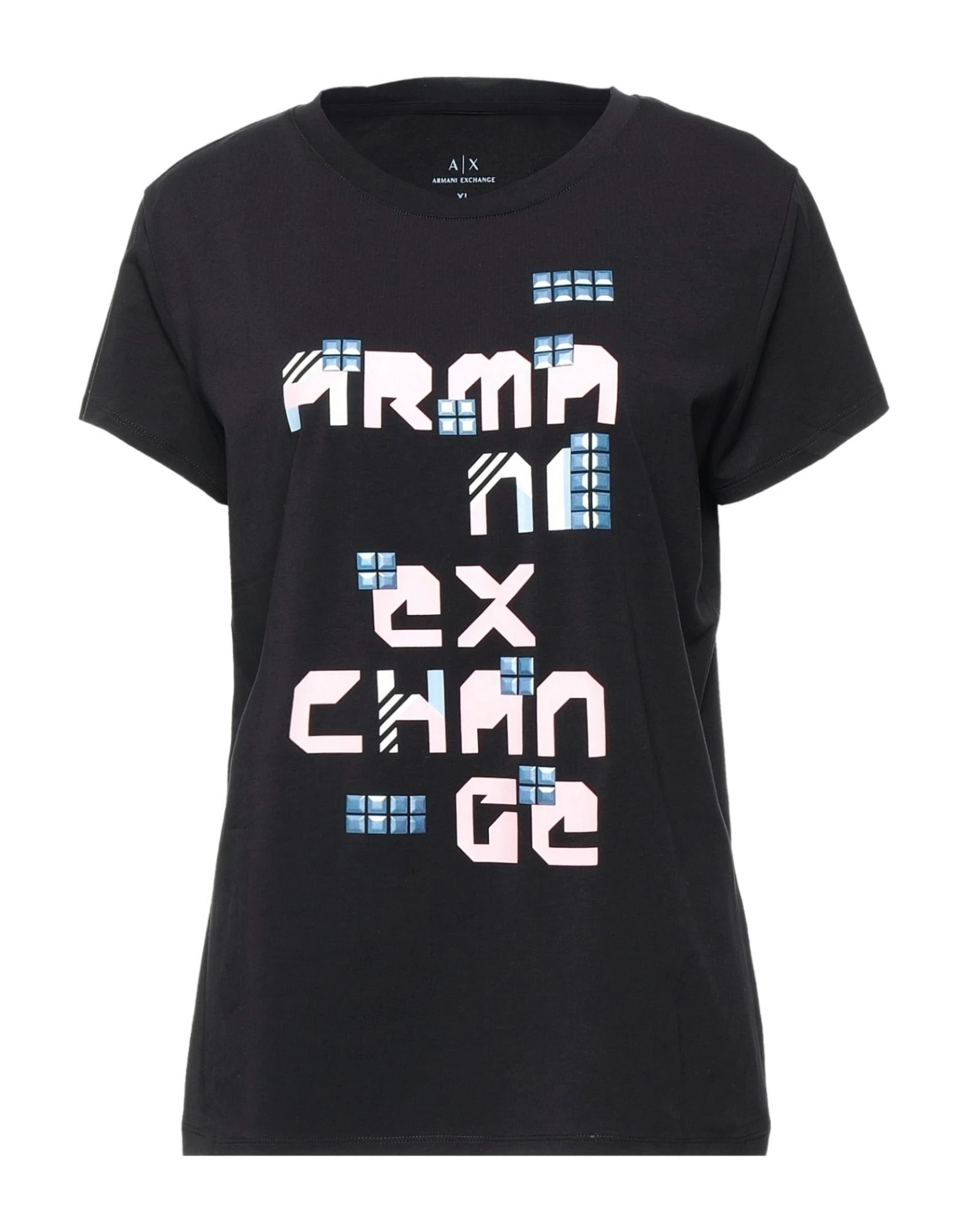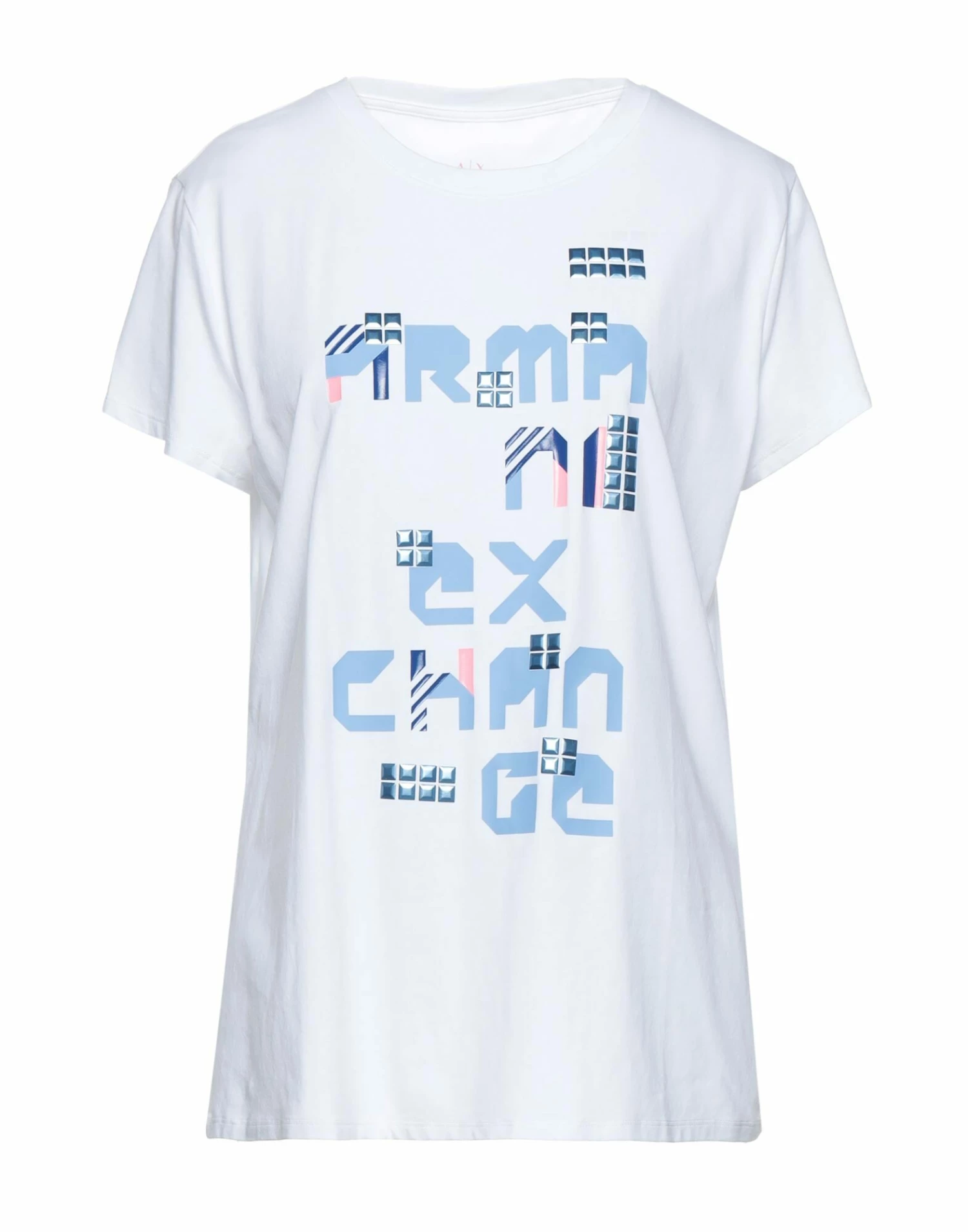 jersey, contrasting applications, multicolor pattern, round collar, short sleeves, no pockets, stretch