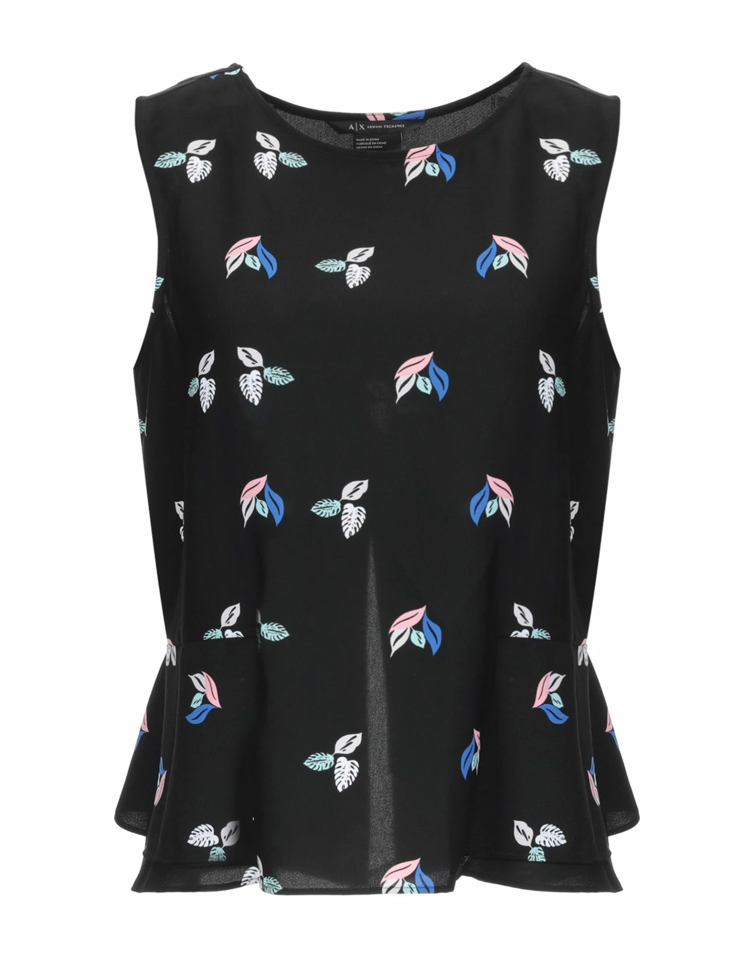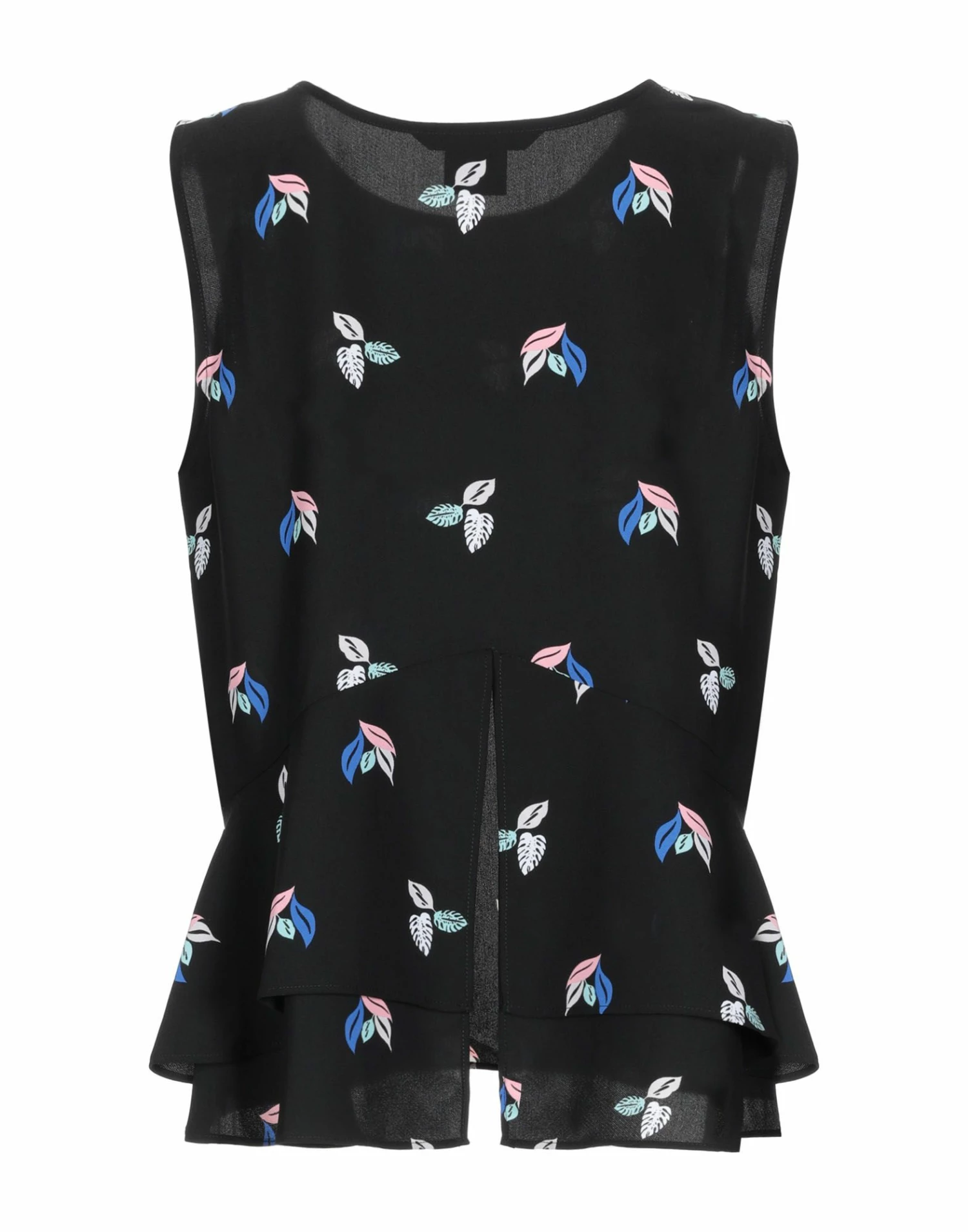 crepe, no appliqués, multicolor pattern, round collar, sleeveless, no pockets