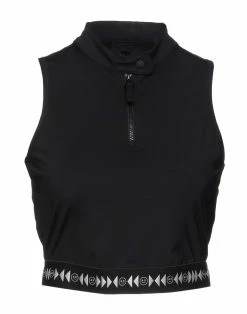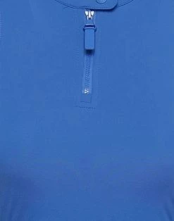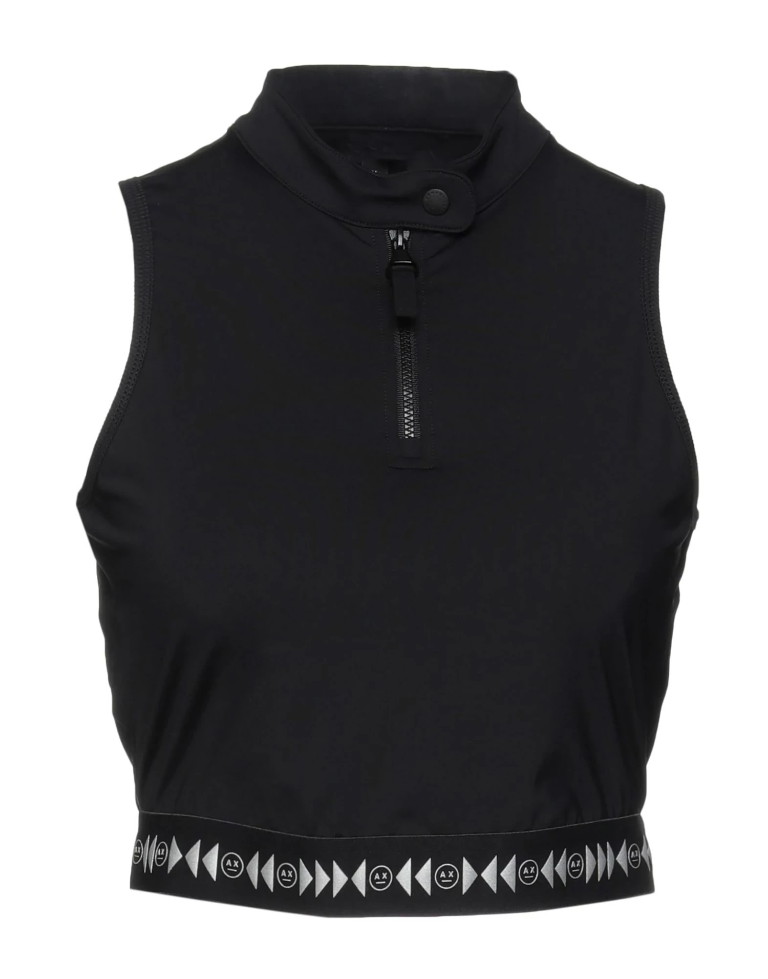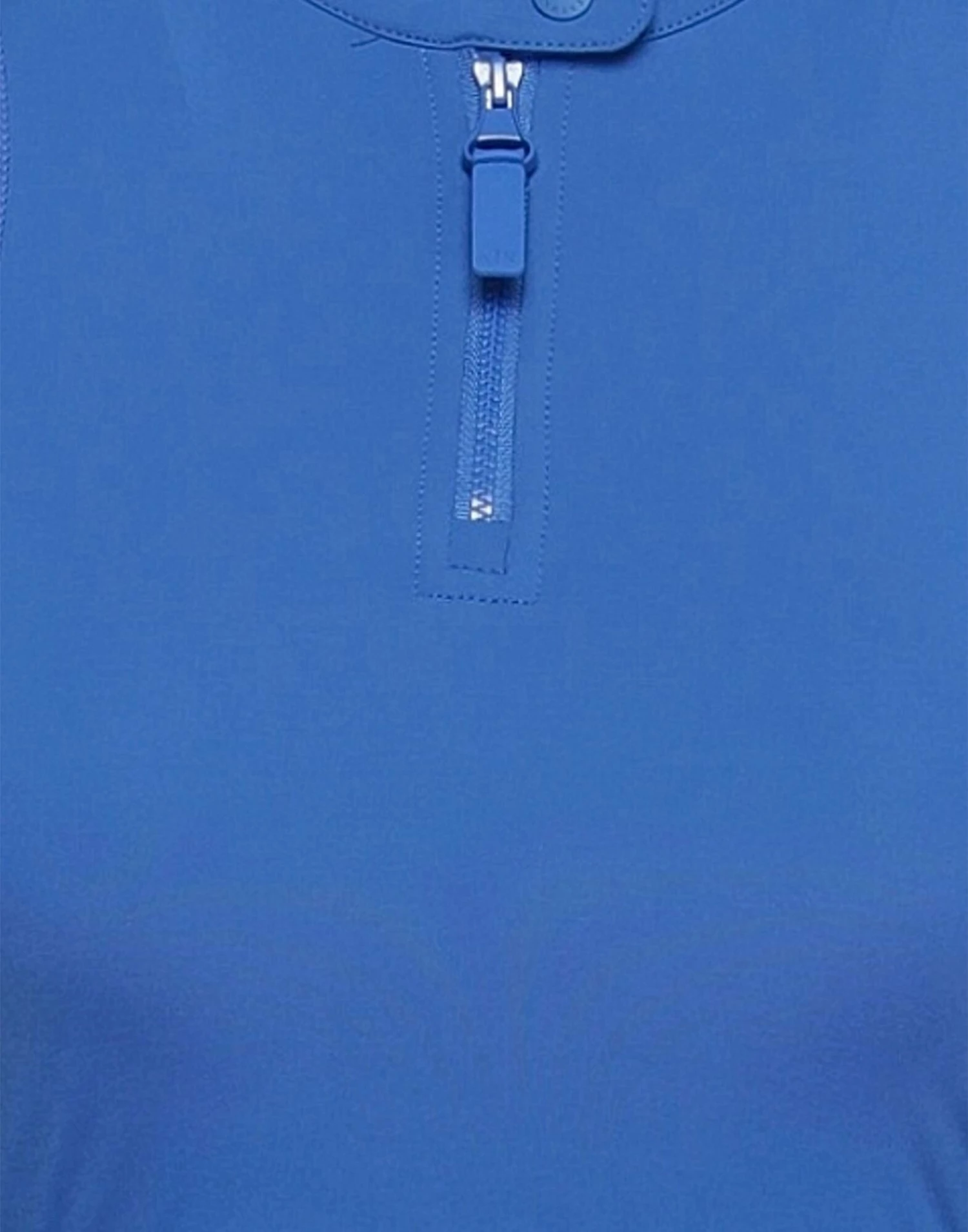 synthetic jersey, brand logo, solid color, mandarin collar, sleeveless, snap buttons fastening, zipper closure, no pockets, stretch